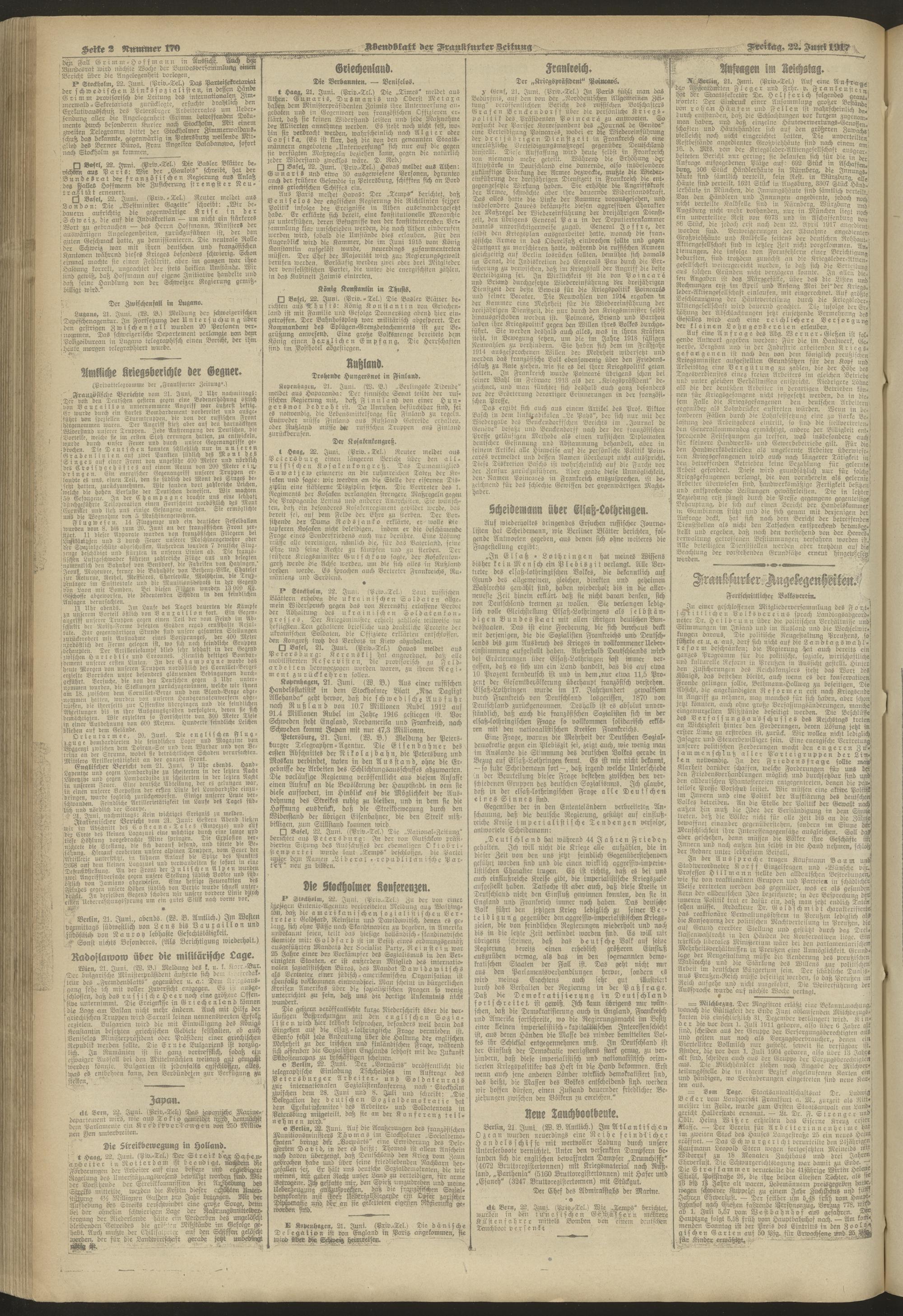 22.06.1917 = Nr. 170. Abendblatt