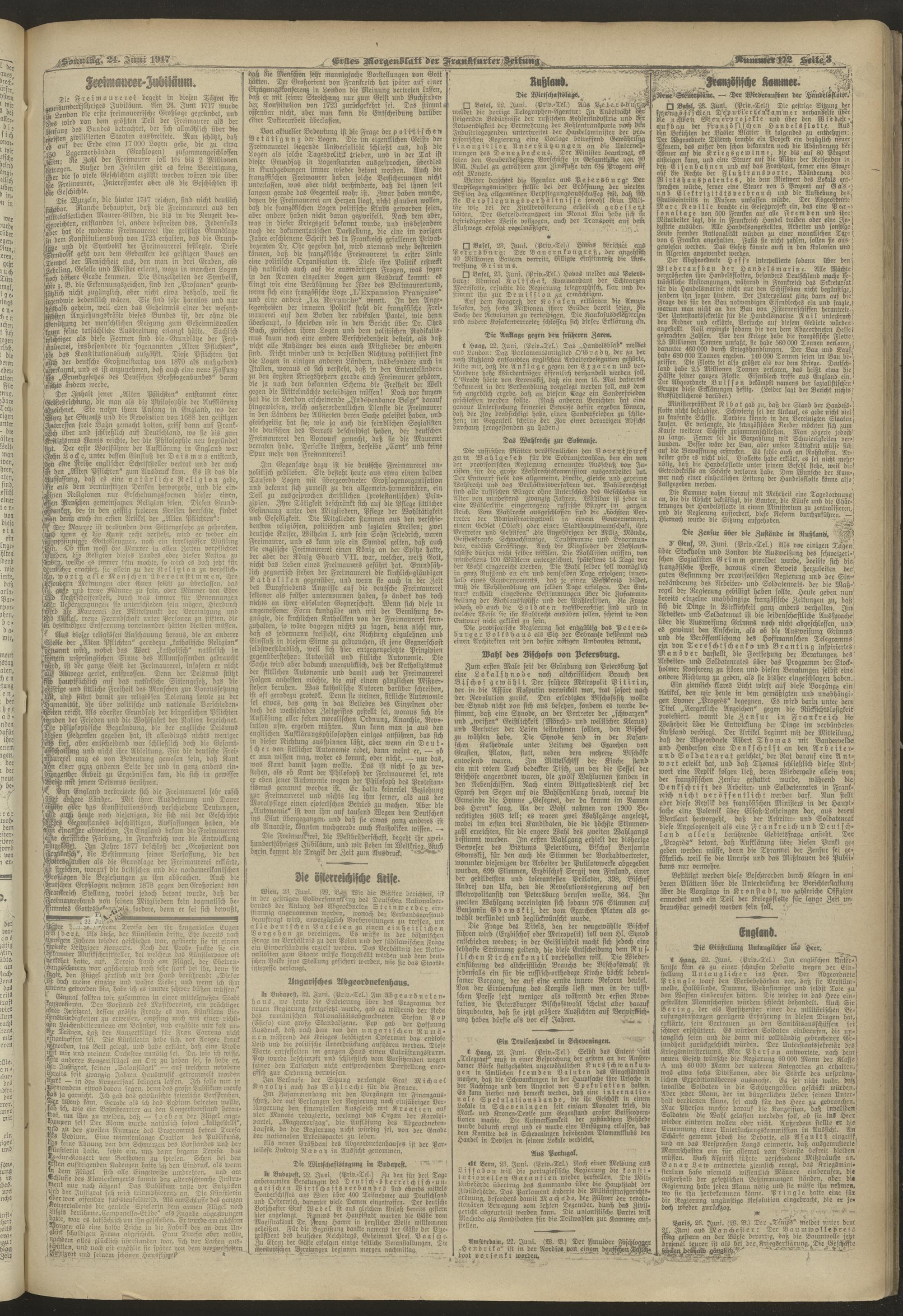 24.06.1917 = Nr. 172. Erstes Morgenblatt
