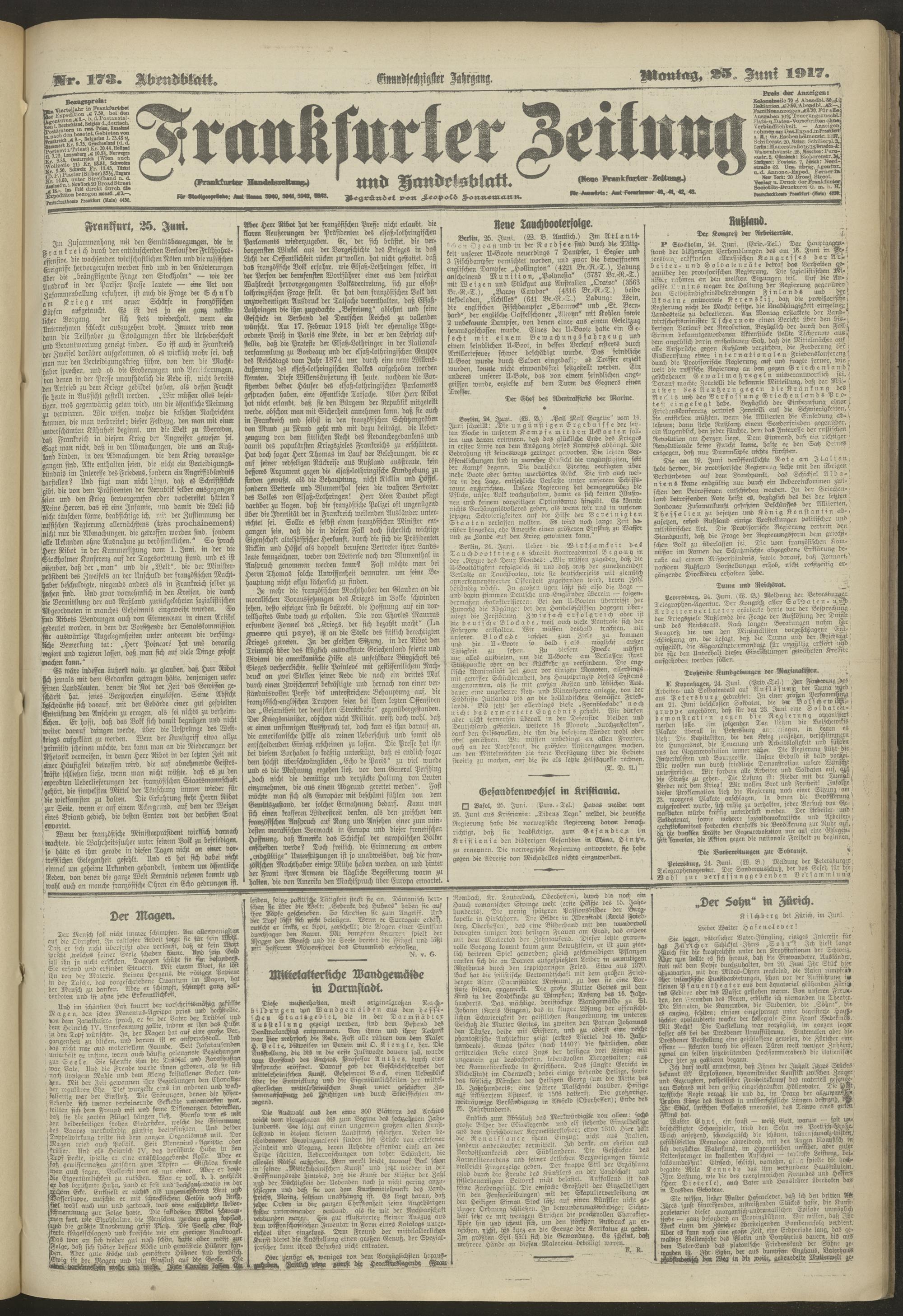 25.06.1917 = Nr. 173. Abendblatt