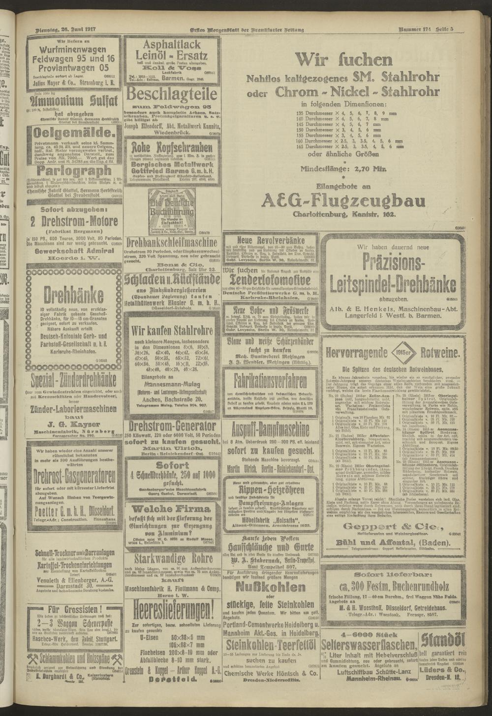 26.06.1917 = Nr. 174. Erstes Morgenblatt