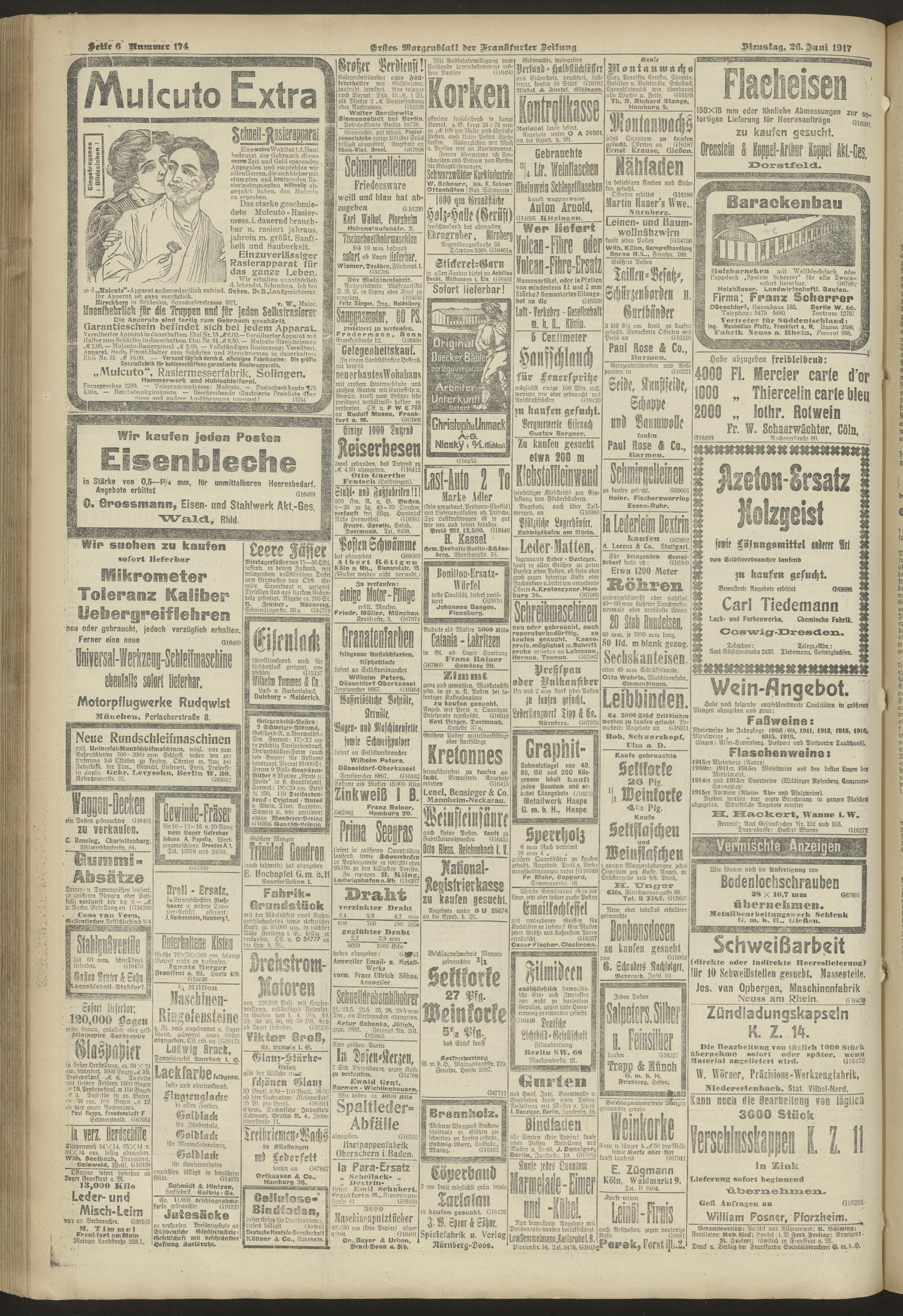 26.06.1917 = Nr. 174. Erstes Morgenblatt