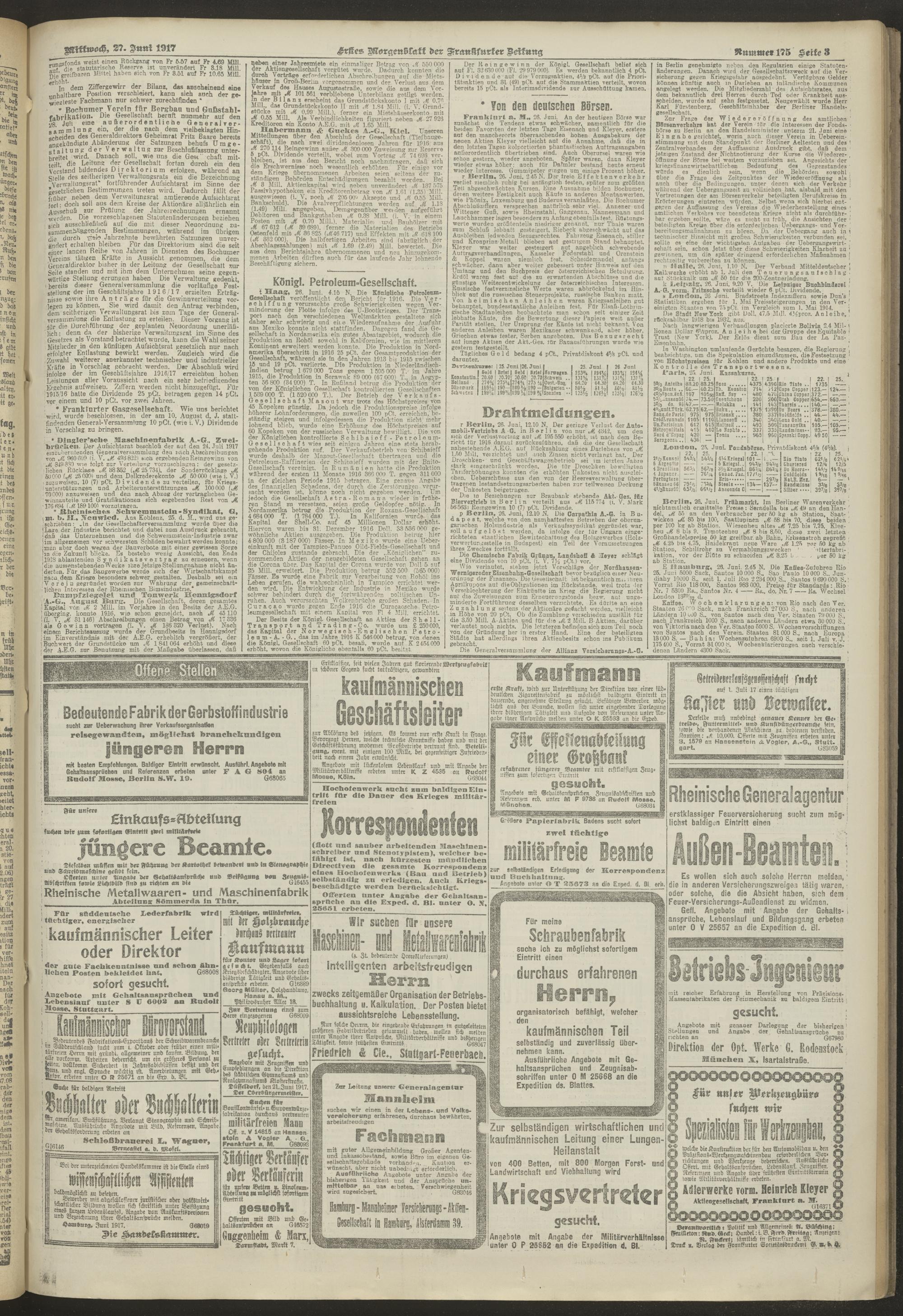 27.06.1917 = Nr. 175. Erstes Morgenblatt