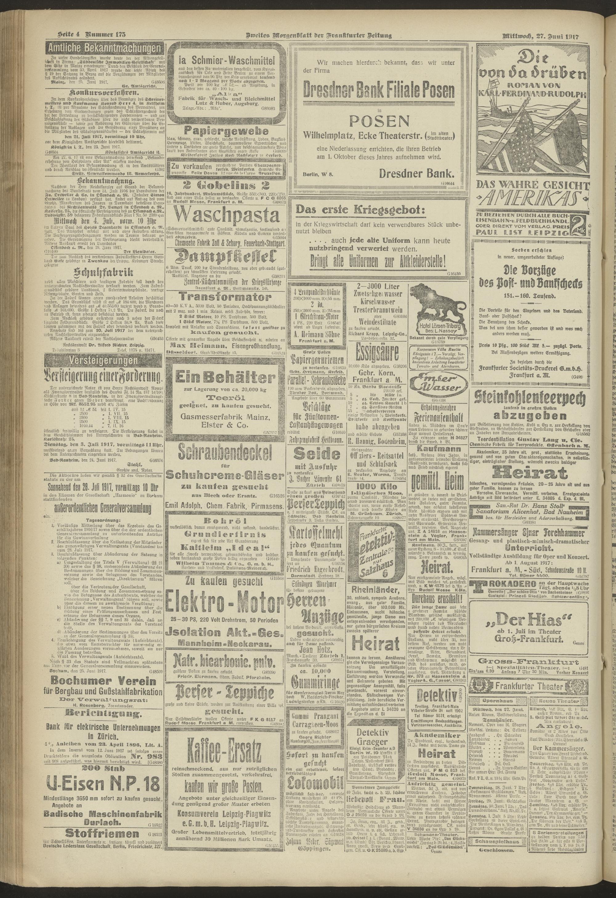 27.06.1917 = Nr. 175. Zweites Morgenblatt