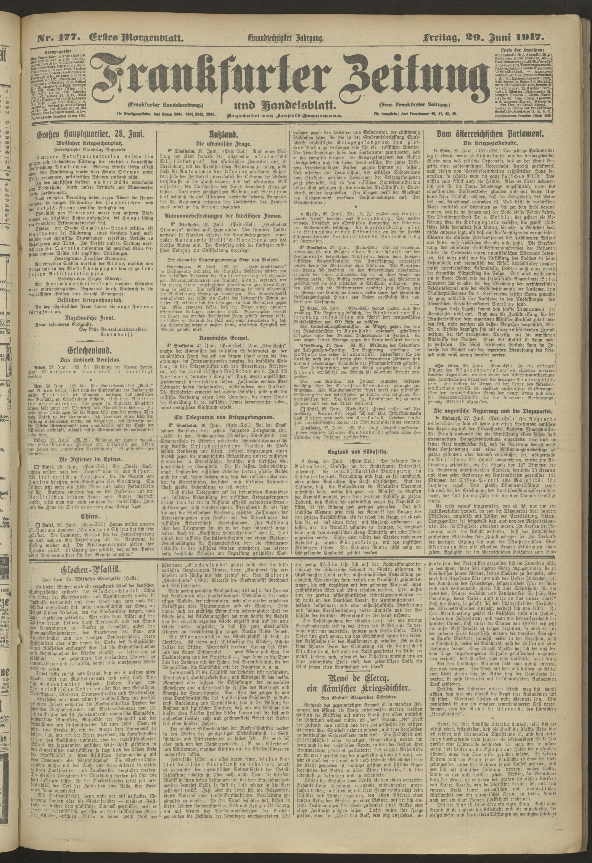 29.06.1917 = Nr. 177. Erstes Morgenblatt