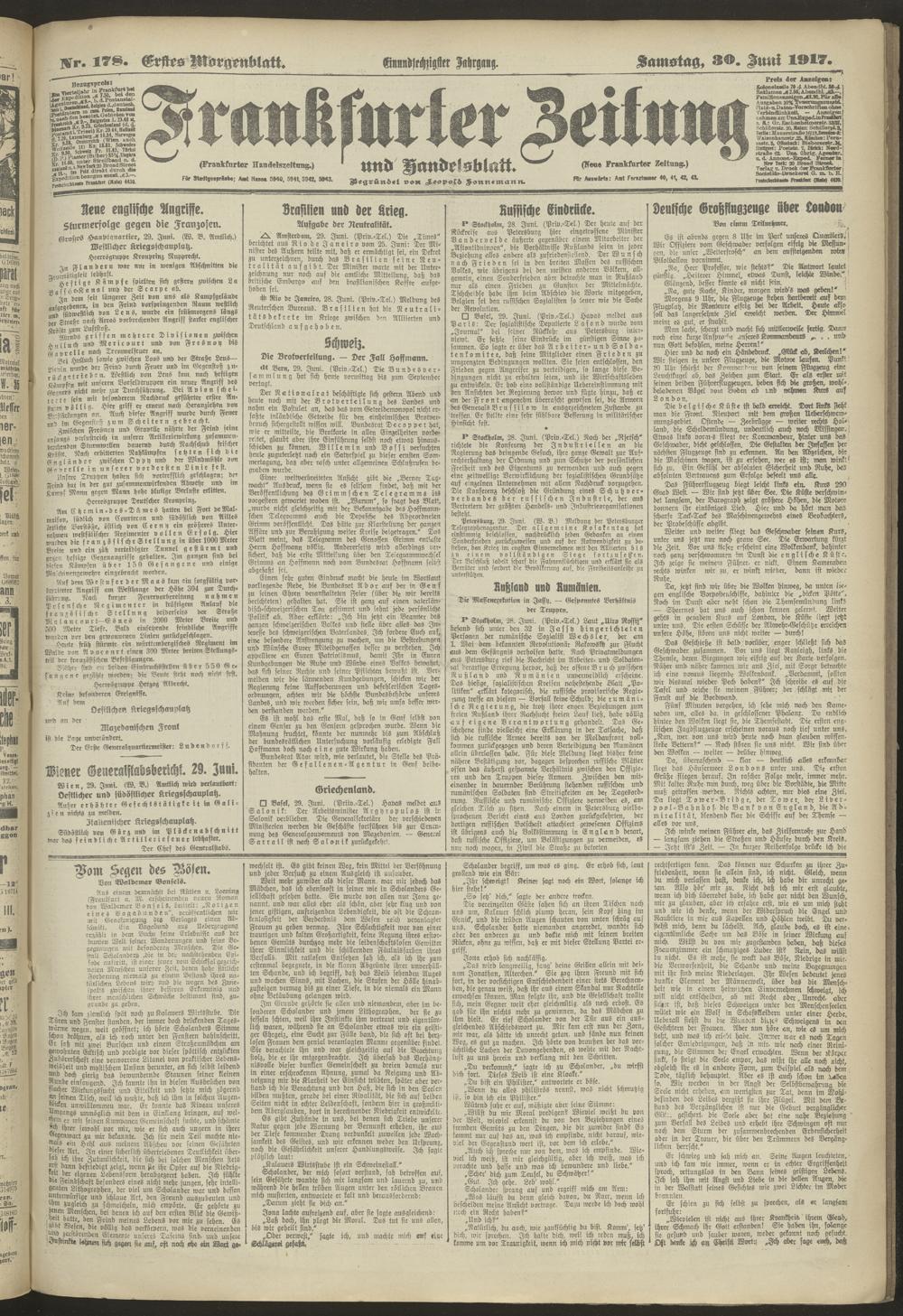 30.06.1917 = Nr. 178. Erstes Morgenblatt