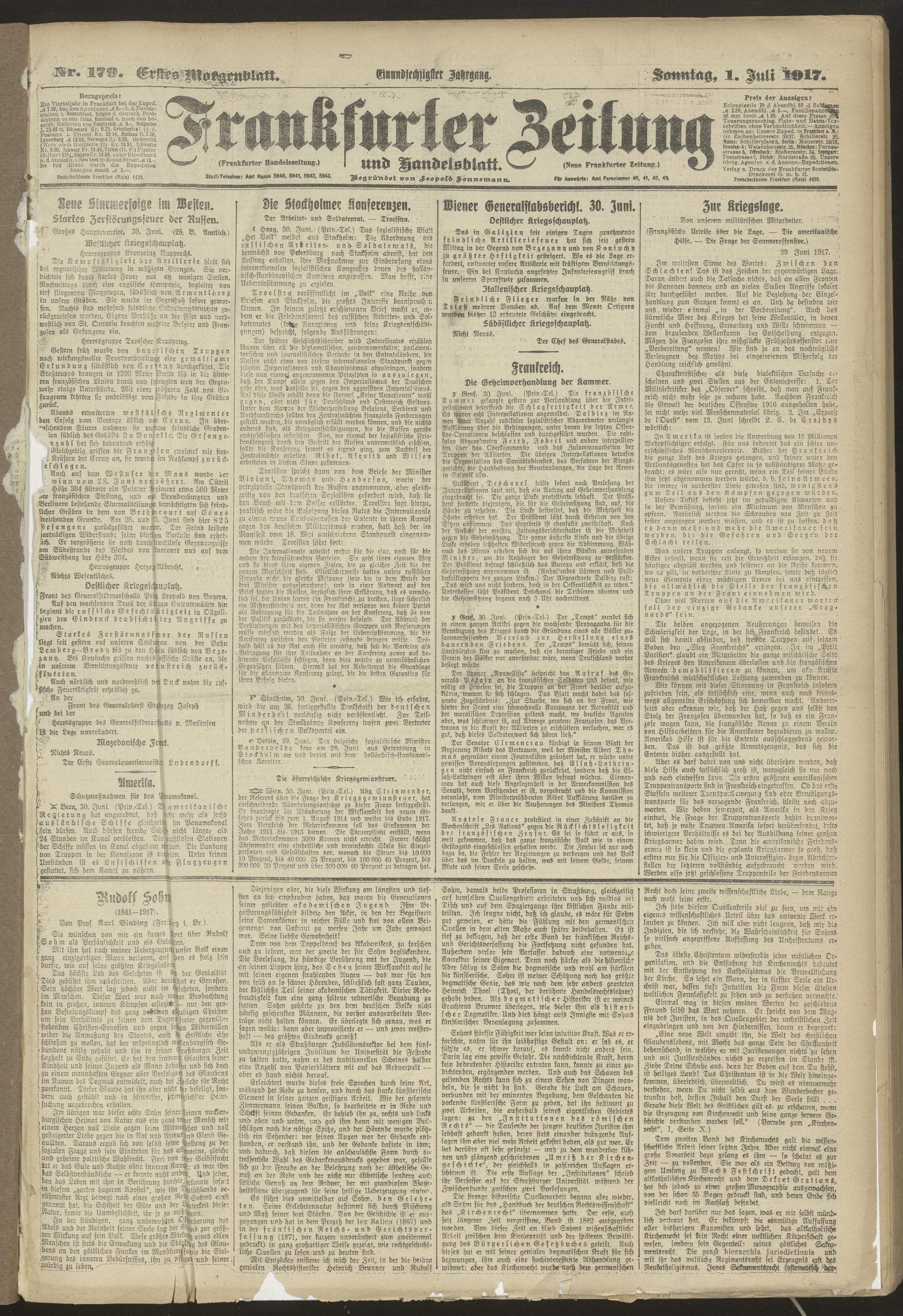 01.07.1917 = Nr. 179. Erstes Morgenblatt