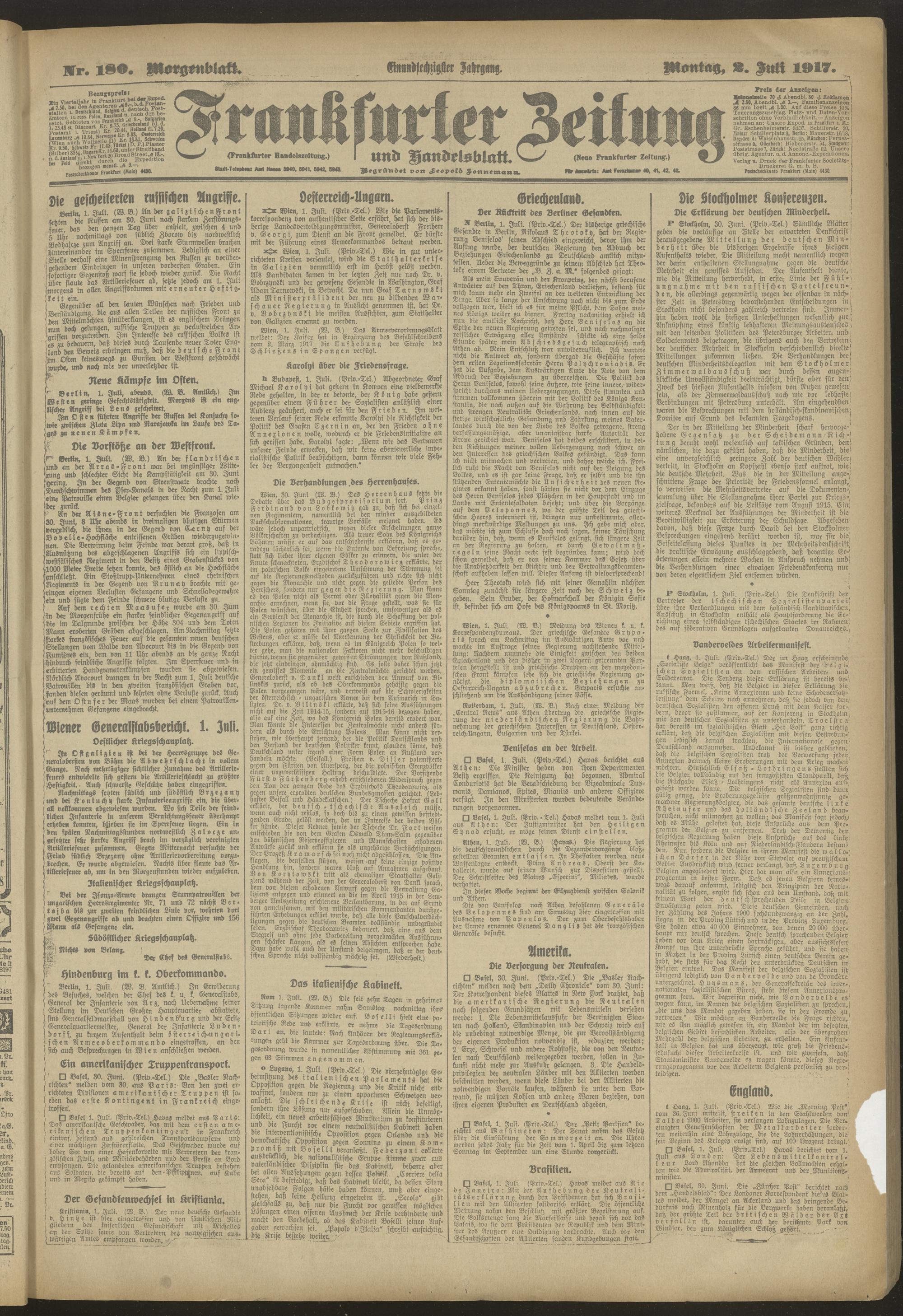 02.07.1917 = Nr. 180. Morgenblatt