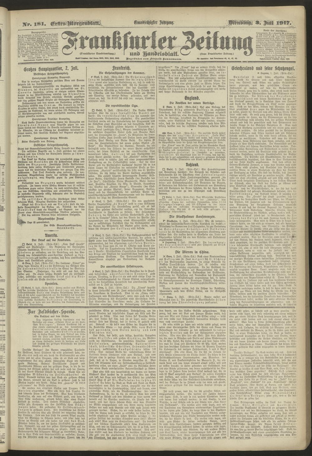 03.07.1917 = Nr. 181. Erstes Morgenblatt