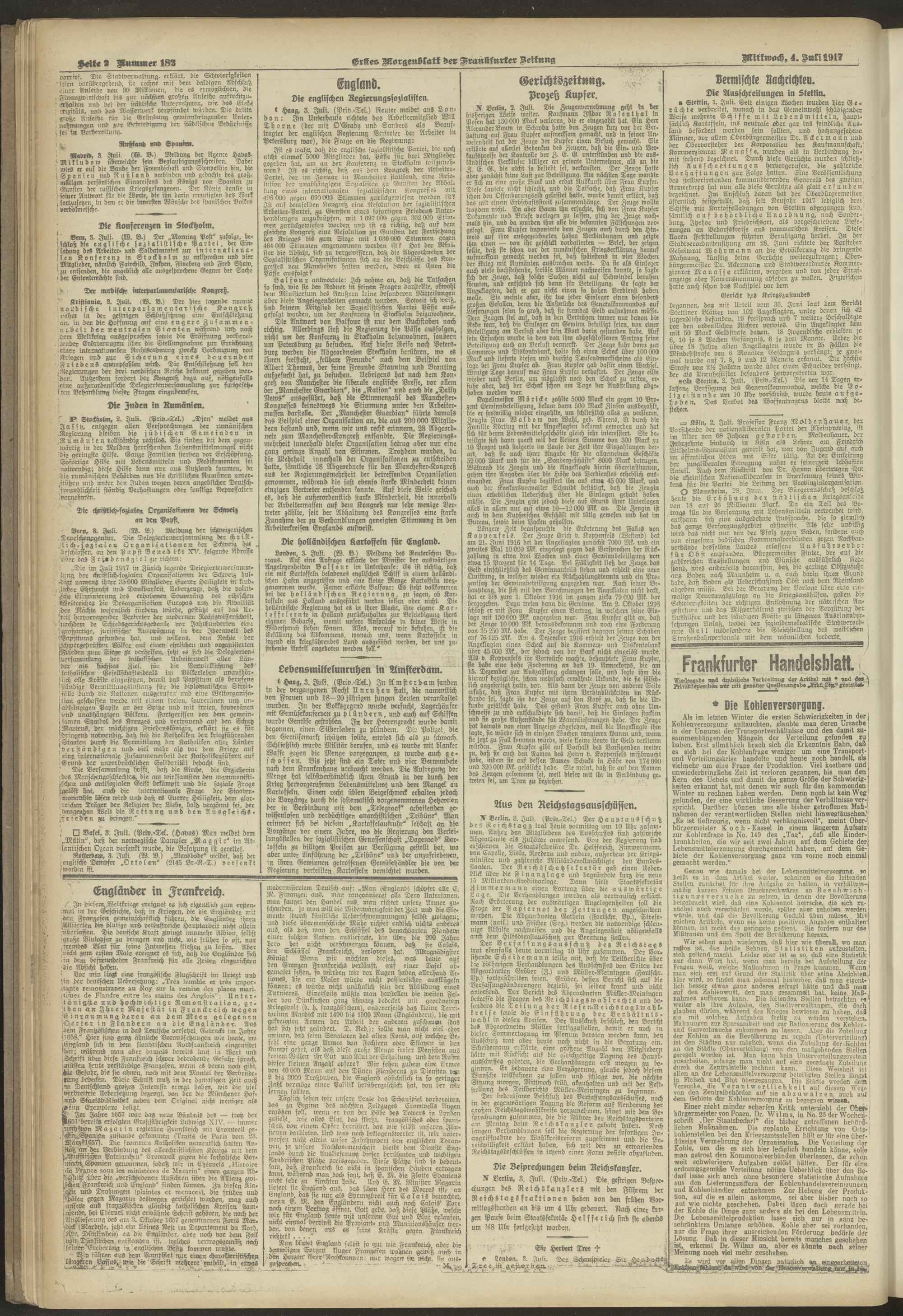04.07.1917 = Nr. 182. Erstes Morgenblatt