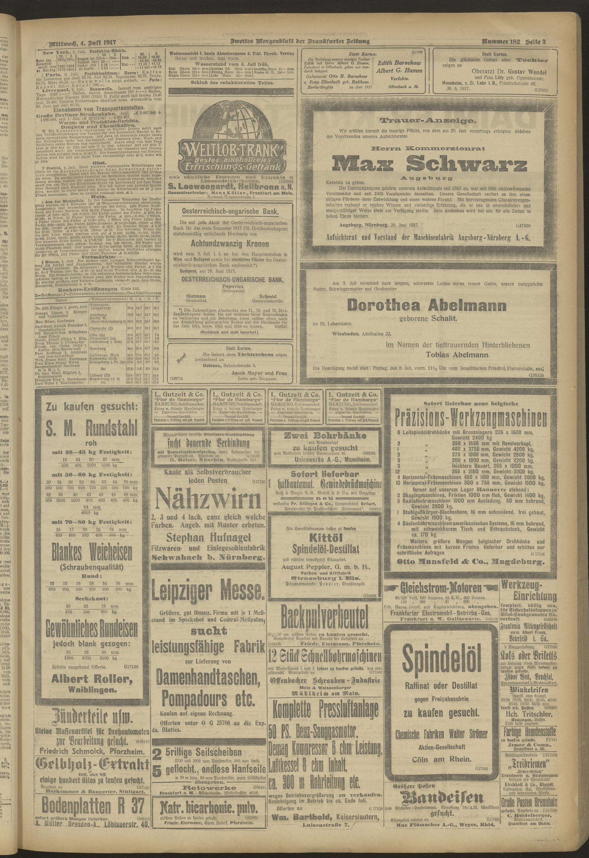 04.07.1917 = Nr. 182. Zweites Morgenblatt