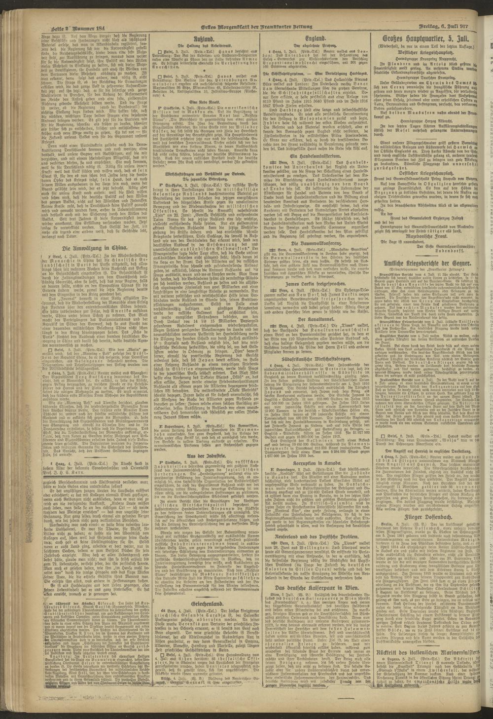 06.07.1917 = Nr. 184. Erstes Morgenblatt