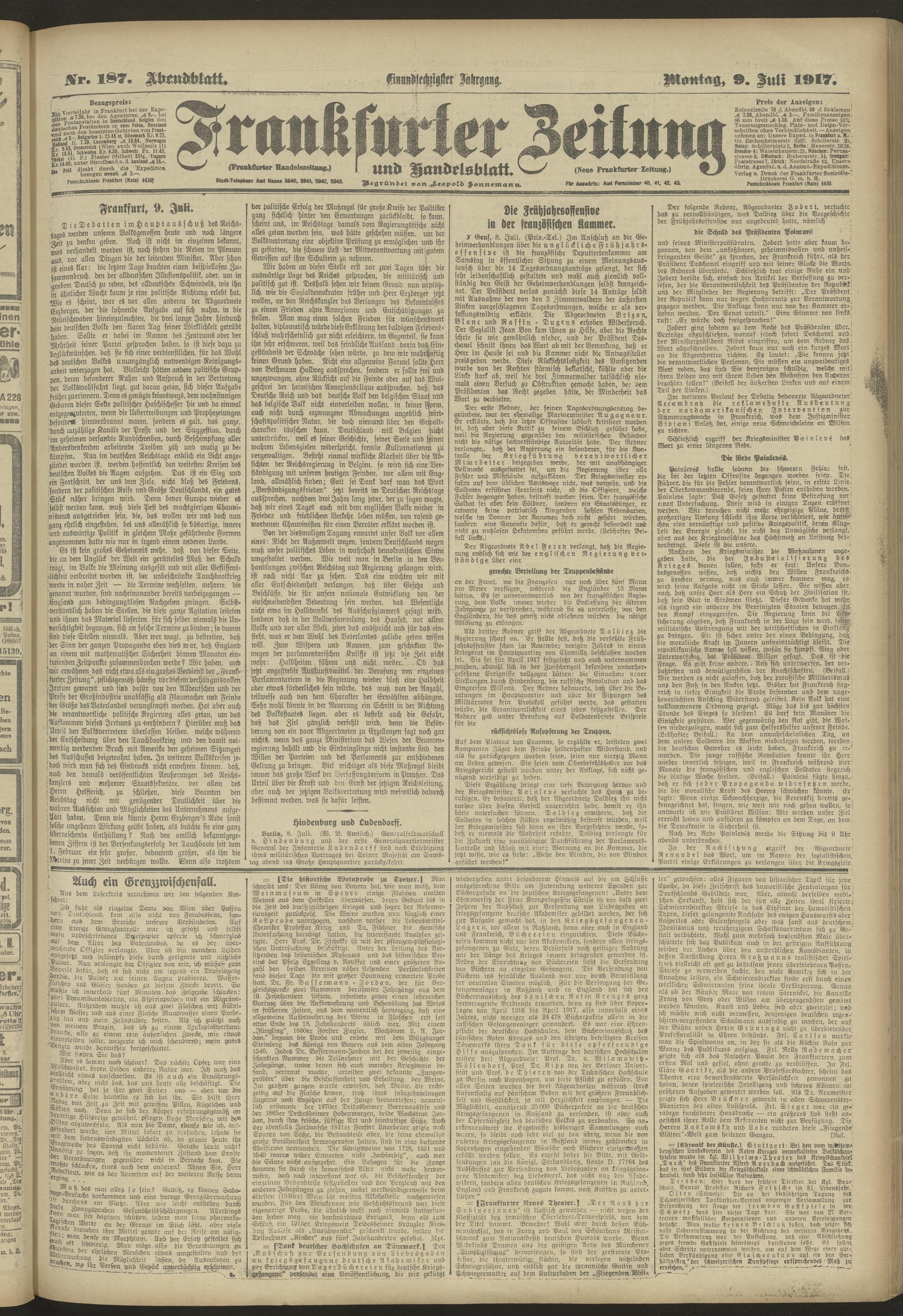 09.07.1917 = Nr. 187. Abendblatt