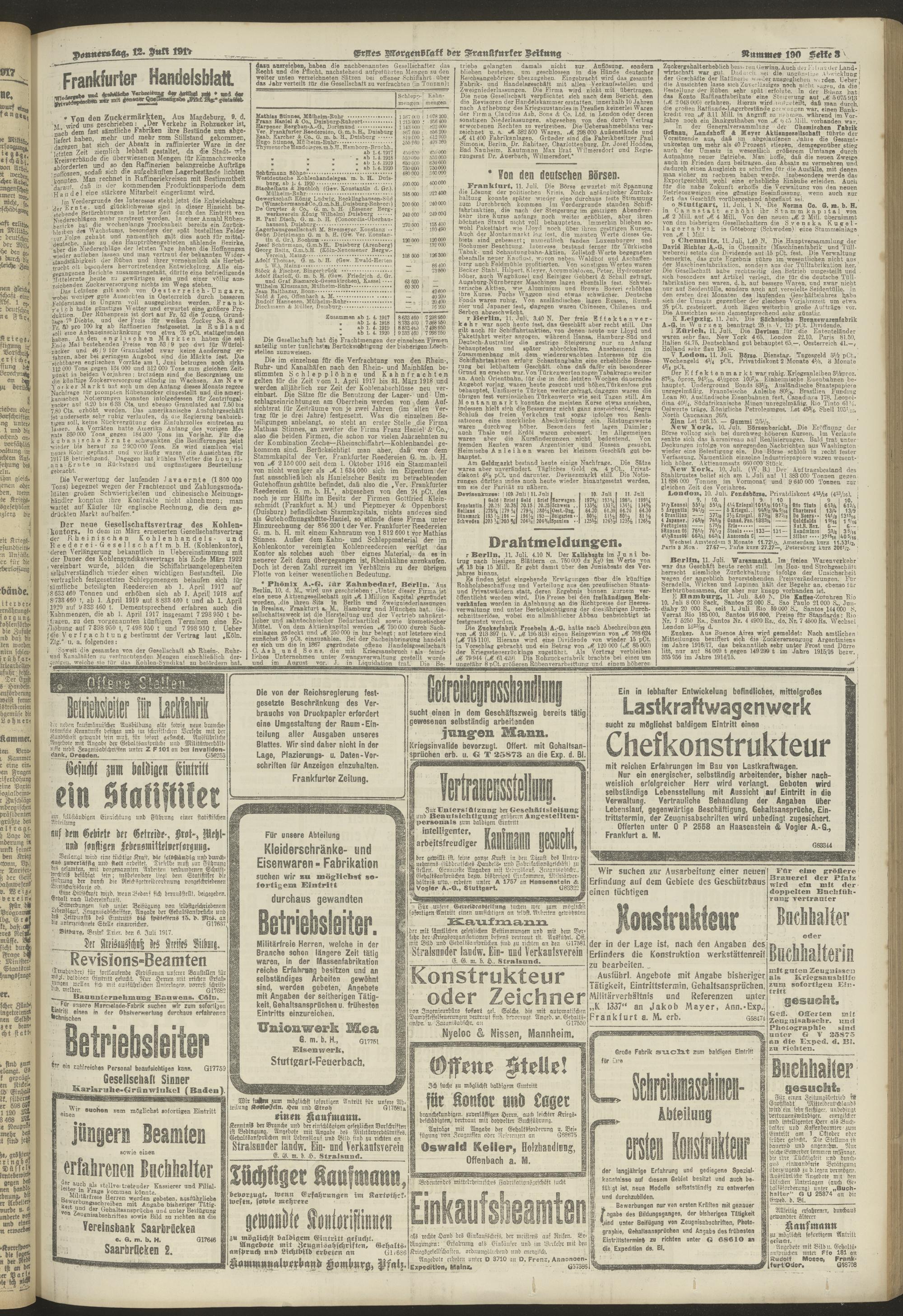 12.07.1917 = Nr. 190. Erstes Morgenblatt