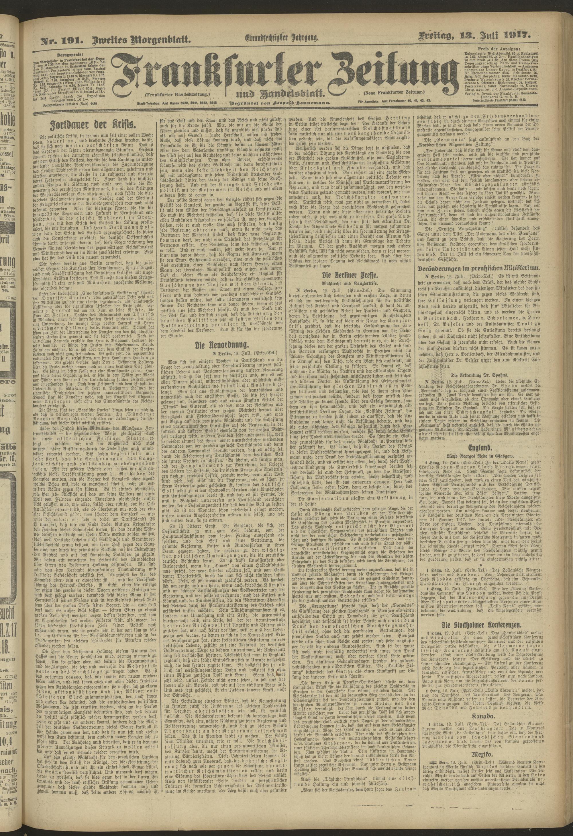 13.07.1917 = Nr. 191. Zweites Morgenblatt