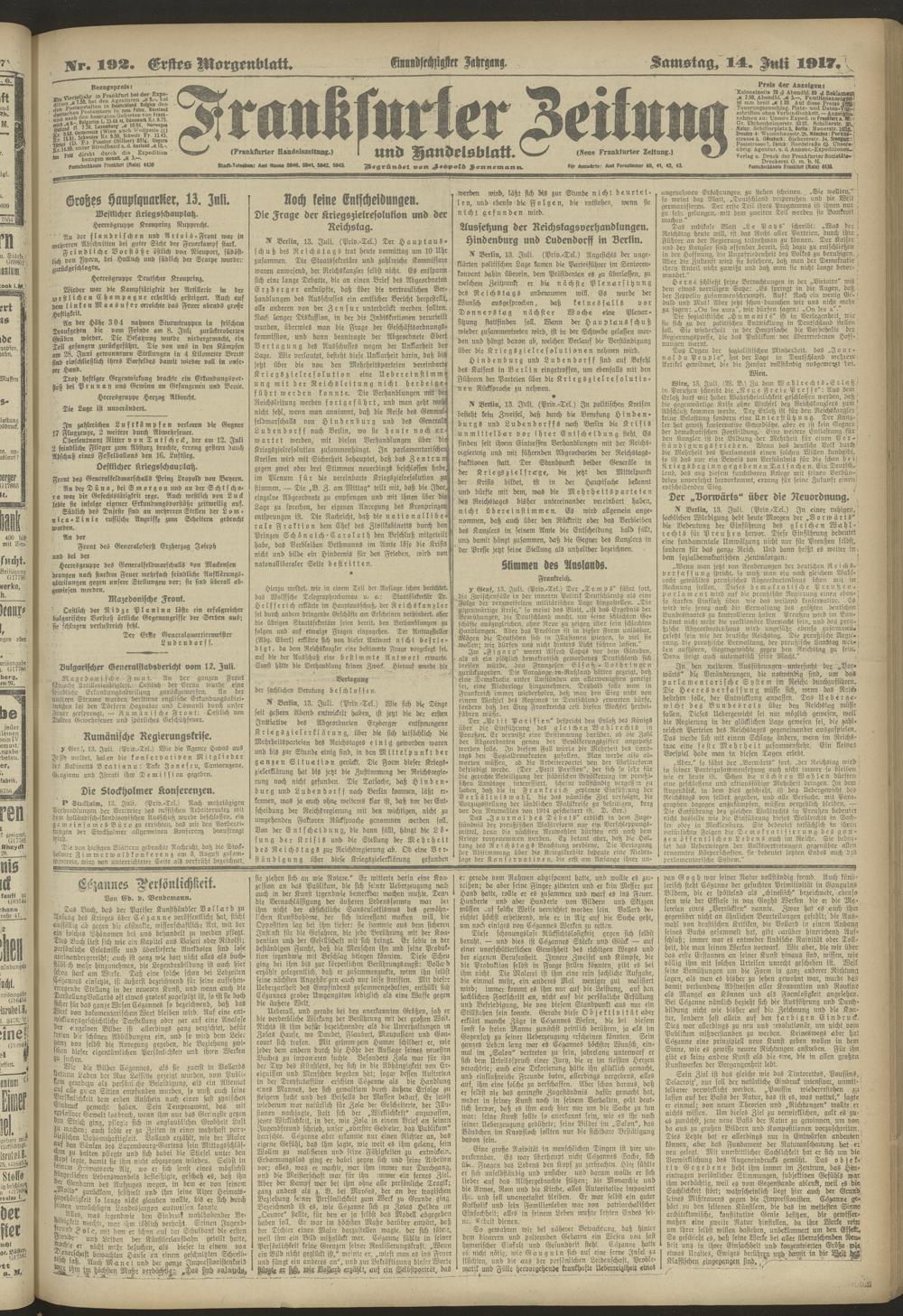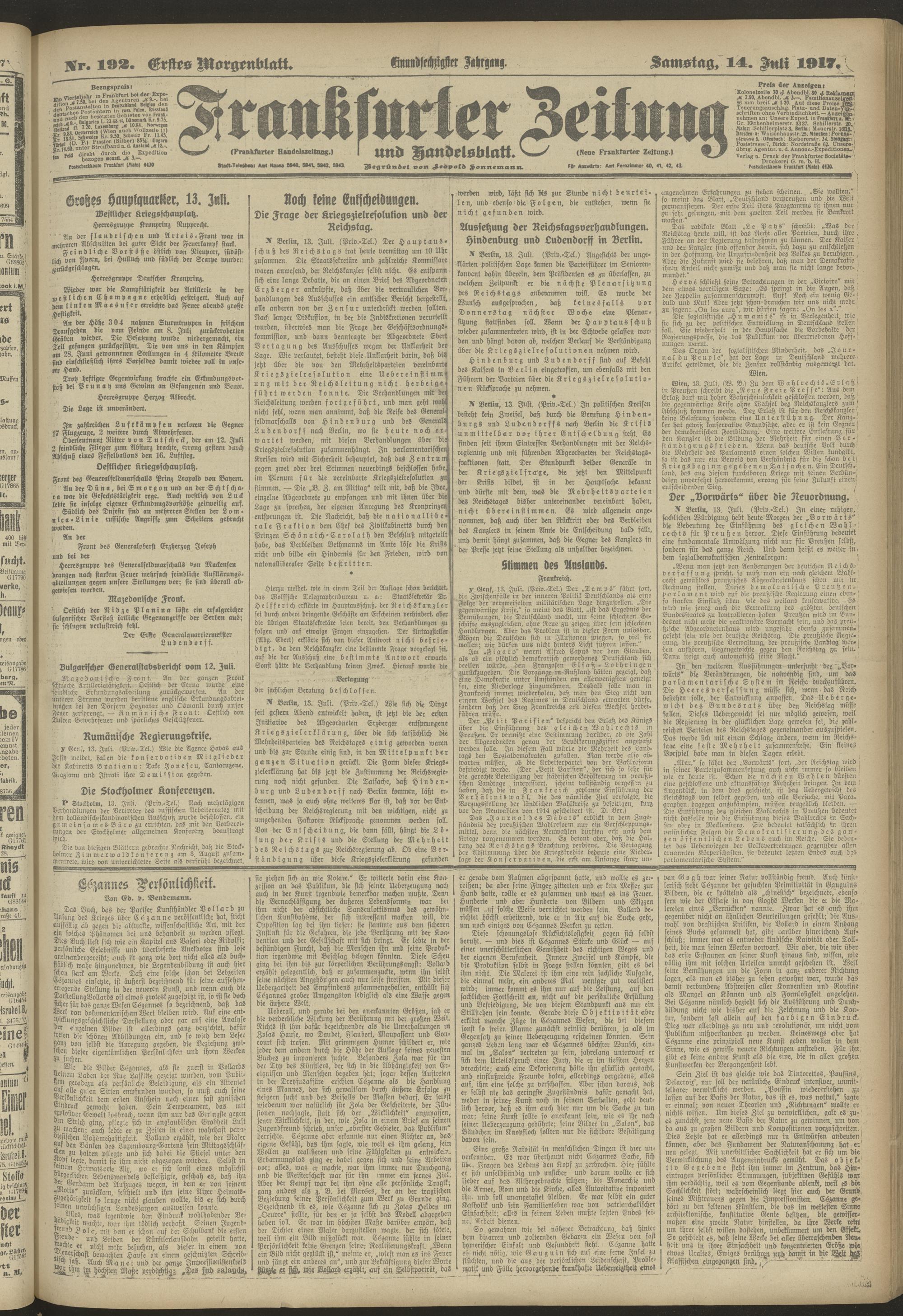 14.07.1917 = Nr. 192. Erstes Morgenblatt