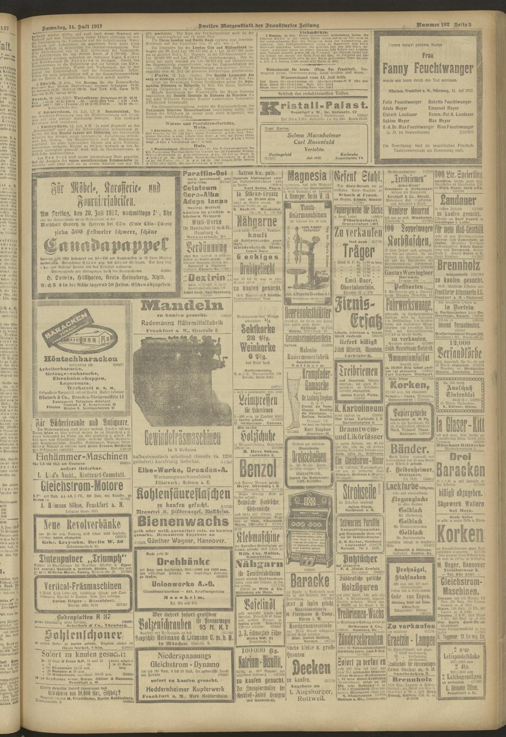 14.07.1917 = Nr. 192. Zweites Morgenblatt