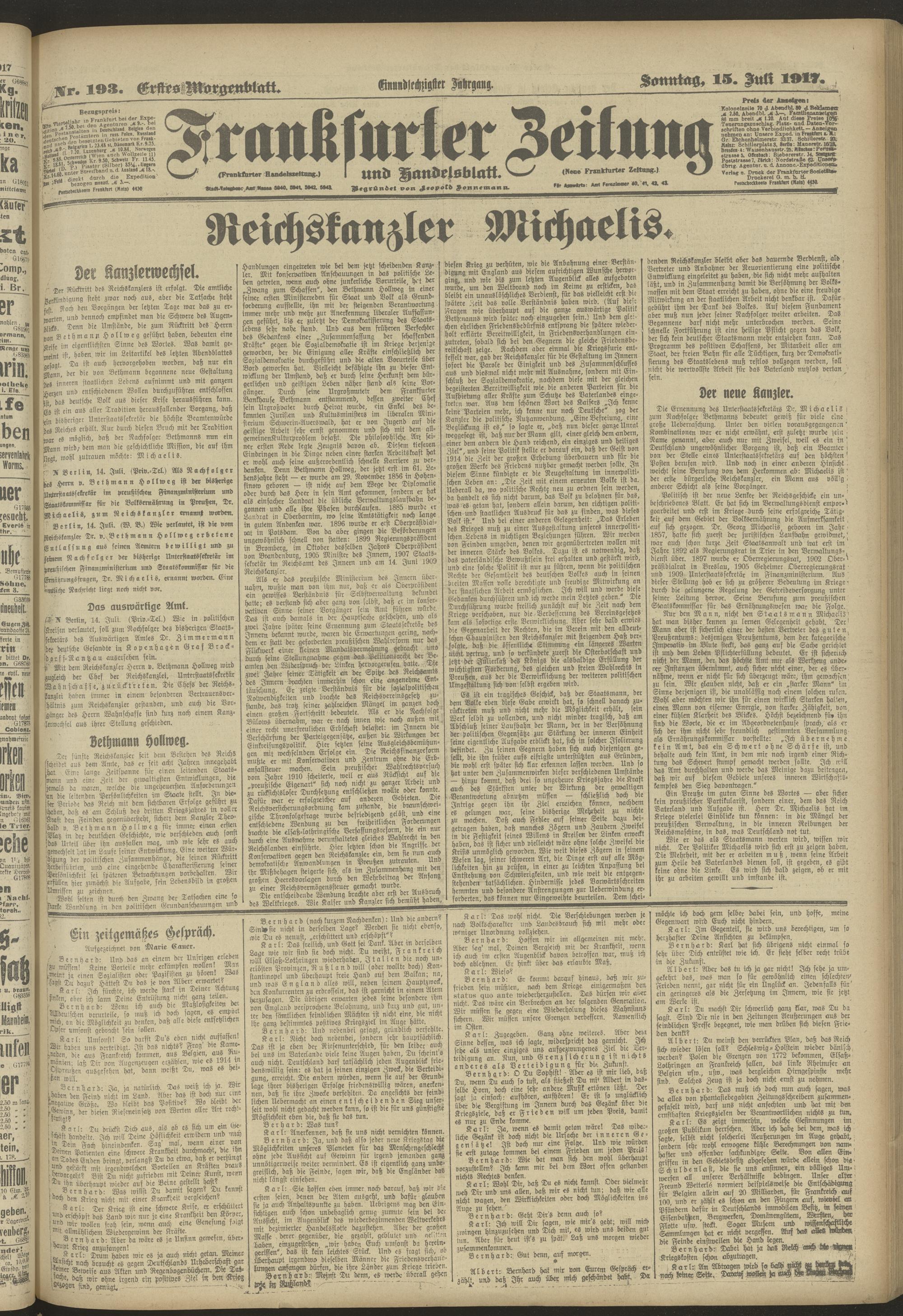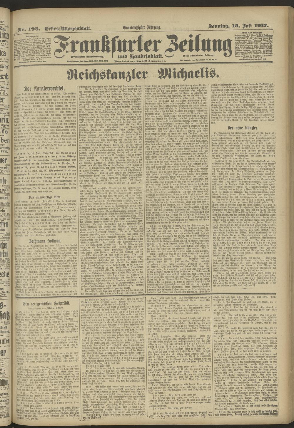 15.07.1917 = Nr. 193. Erstes Morgenblatt