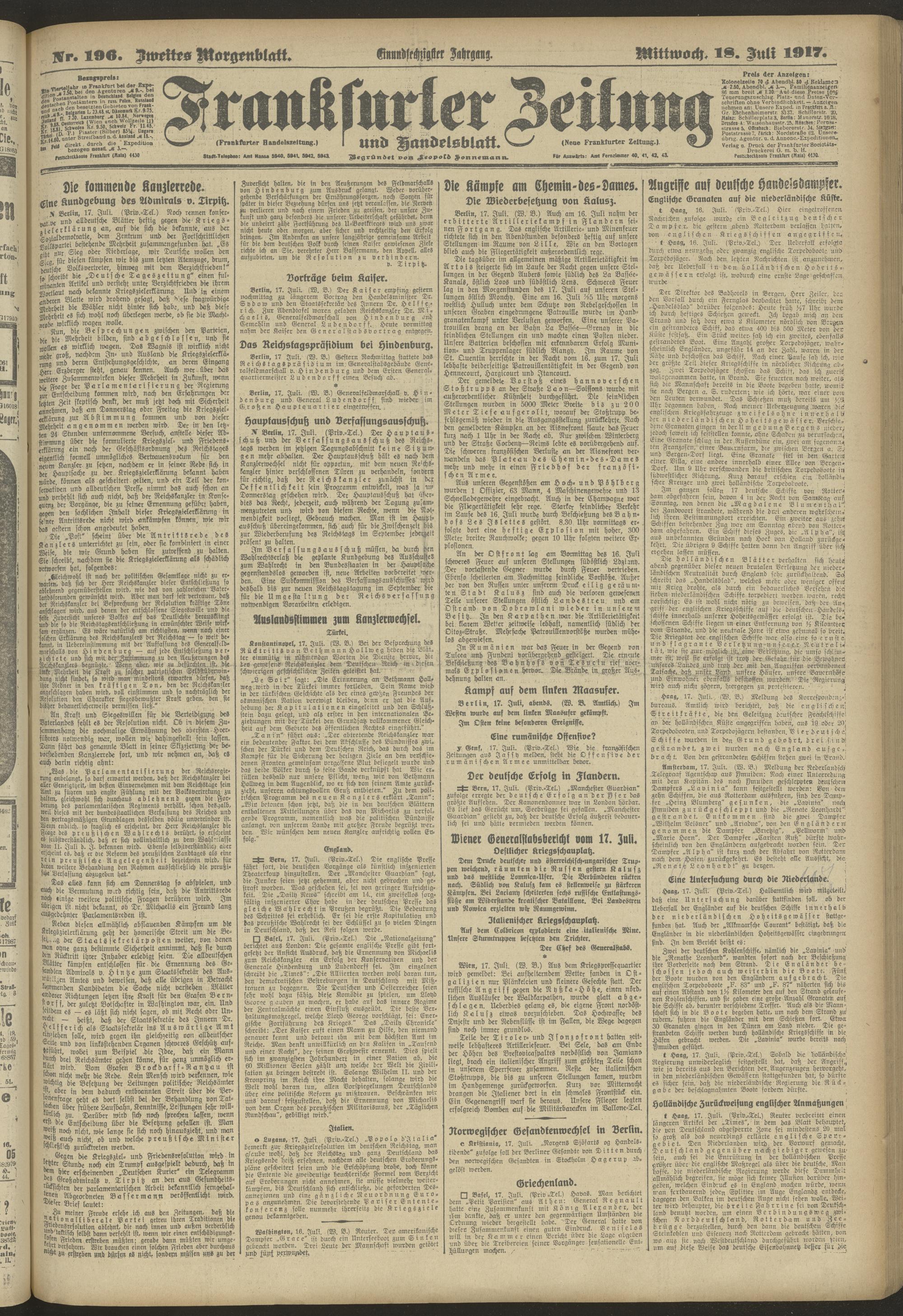 18.07.1917 = Nr. 196. Zweites Morgenblatt