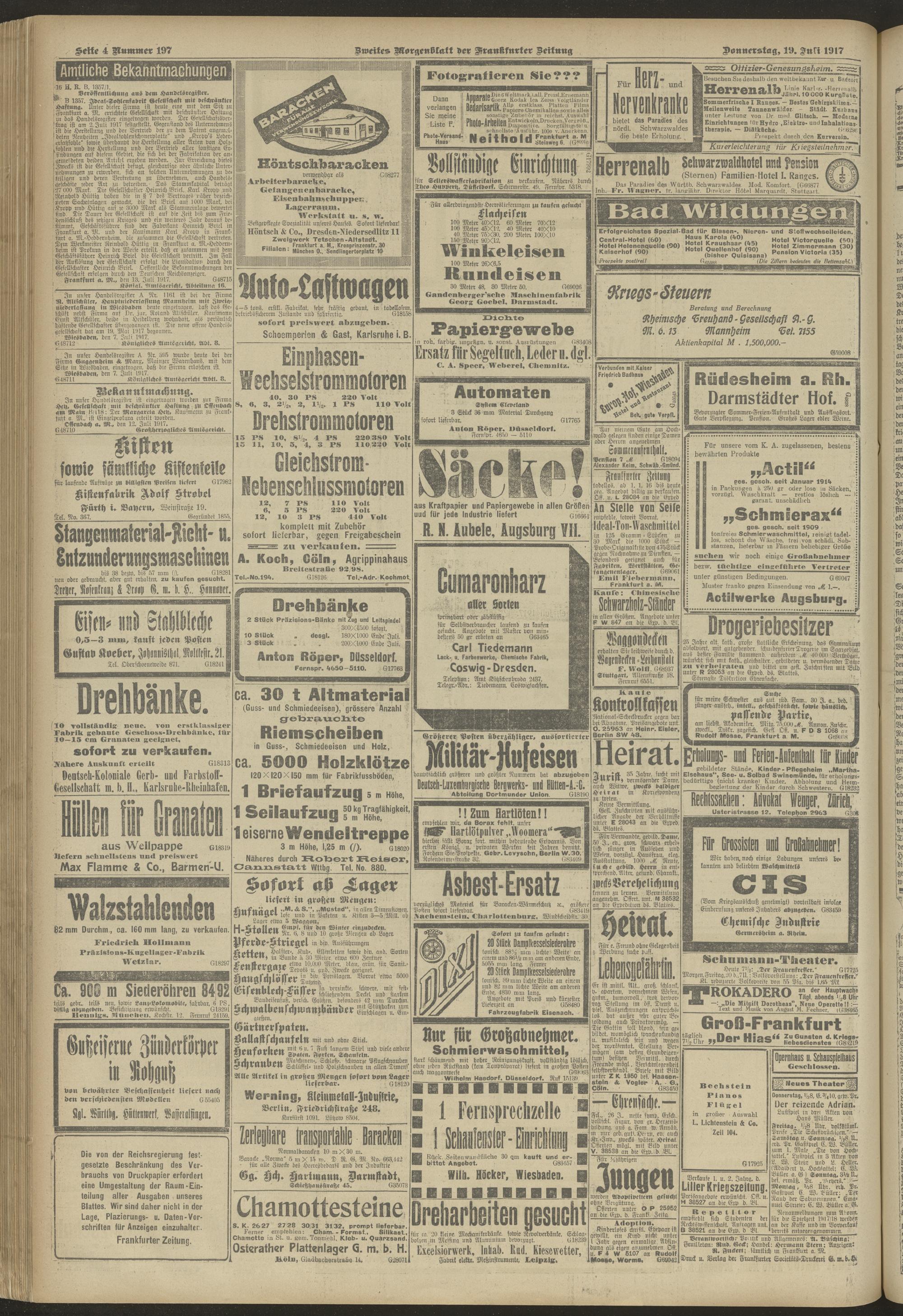 19.07.1917 = Nr. 197. Zweites Morgenblatt