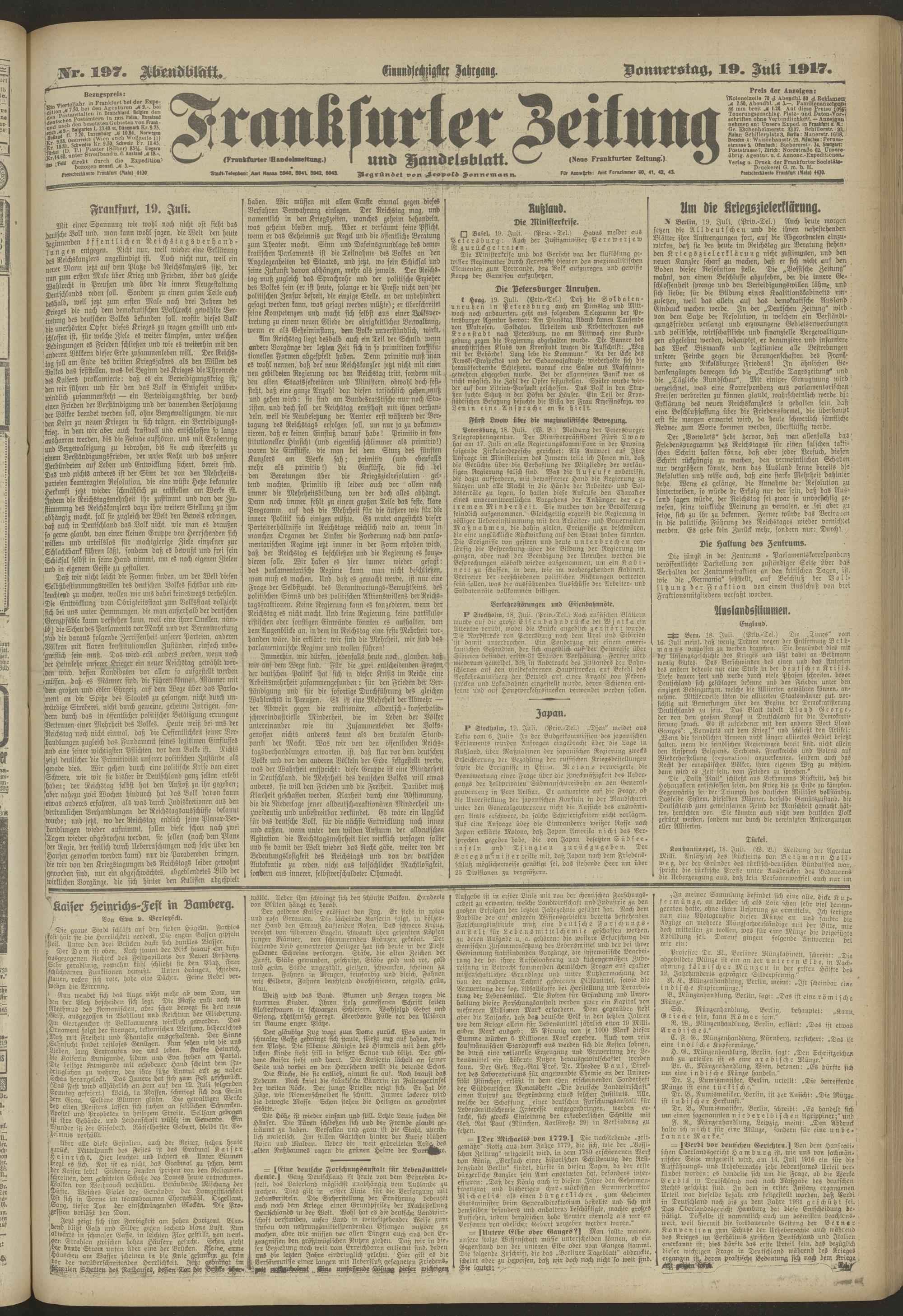 19.07.1917 = Nr. 197. Abendblatt