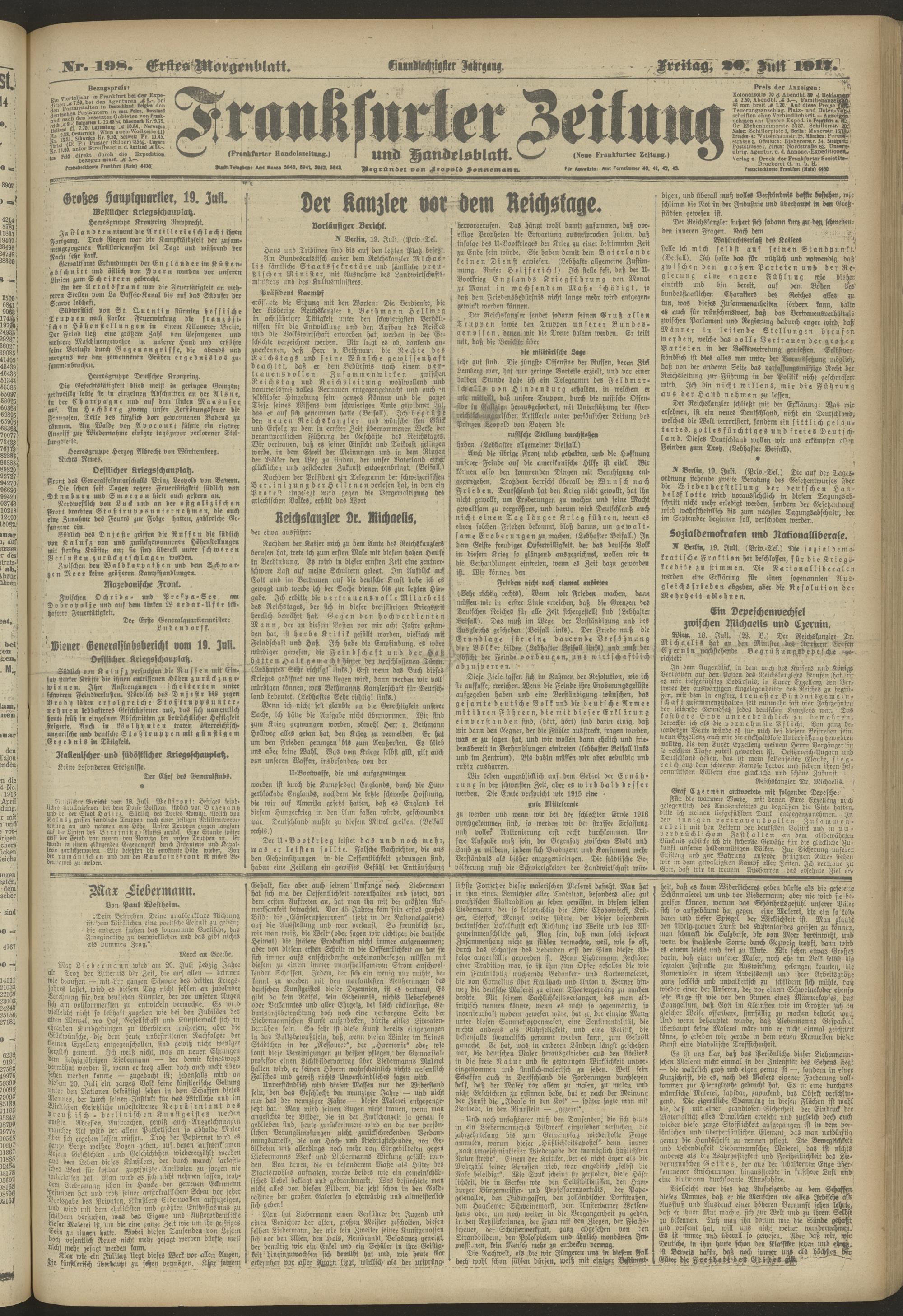 20.07.1917 = Nr. 198. Erstes Morgenblatt