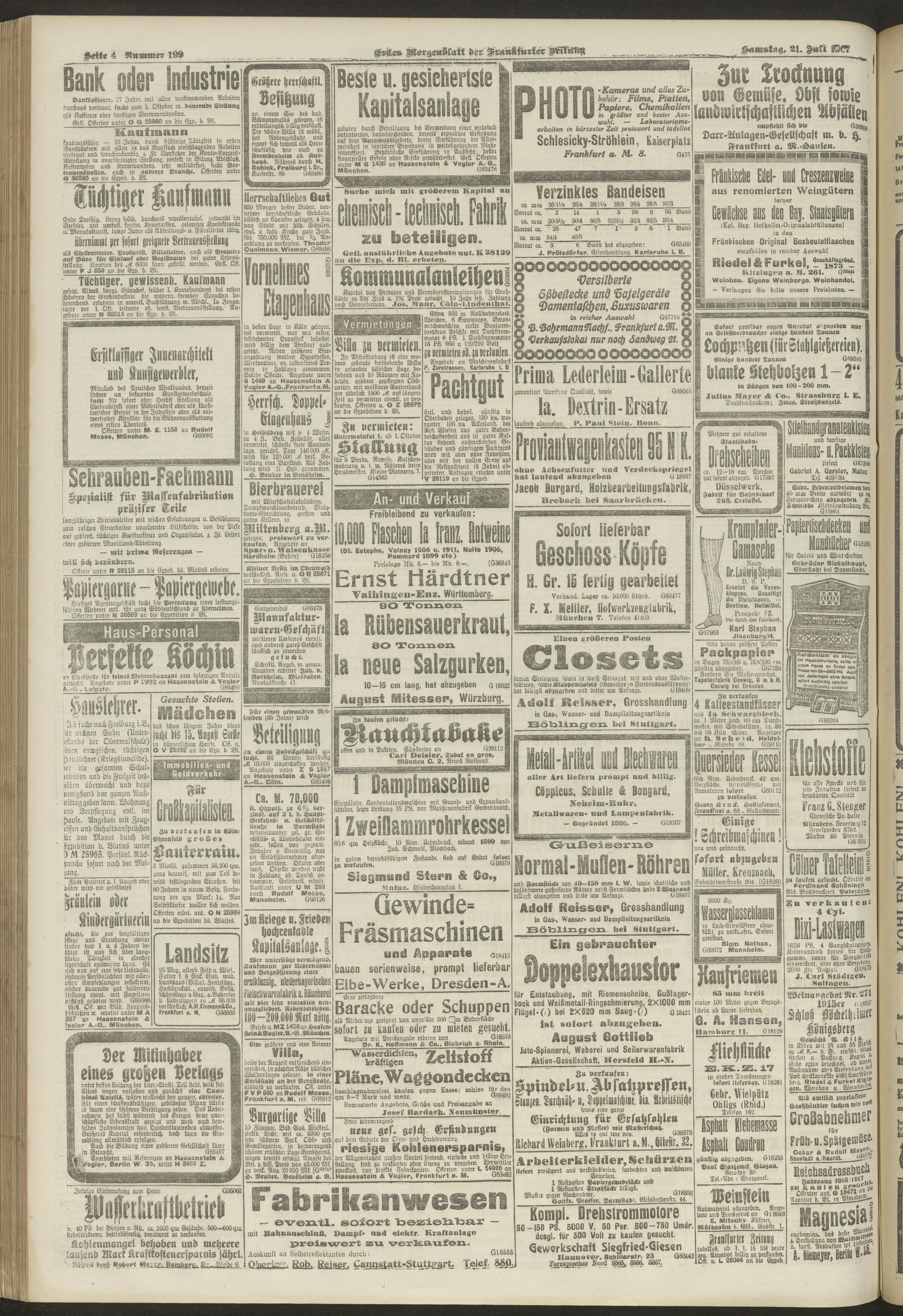 21.07.1917 = Nr. 199. Erstes Morgenblatt