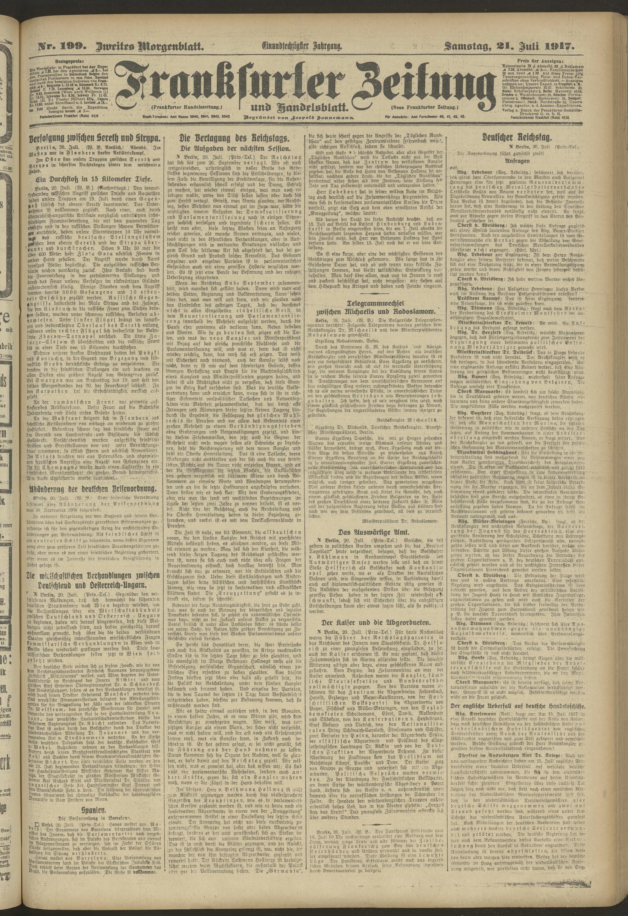 21.07.1917 = Nr. 199. Zweites Morgenblatt