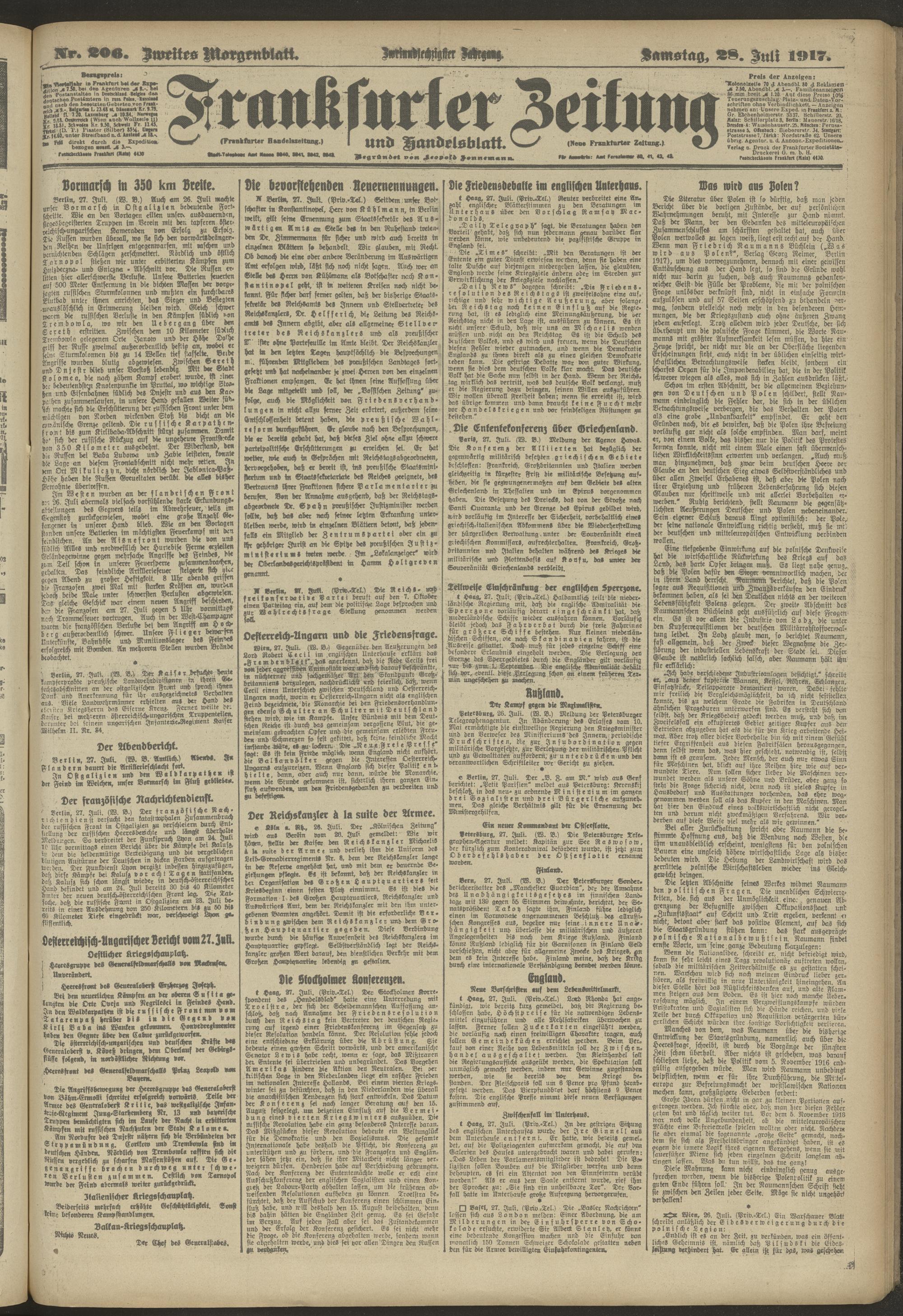 28.07.1917 = Nr. 206. Zweites Morgenblatt