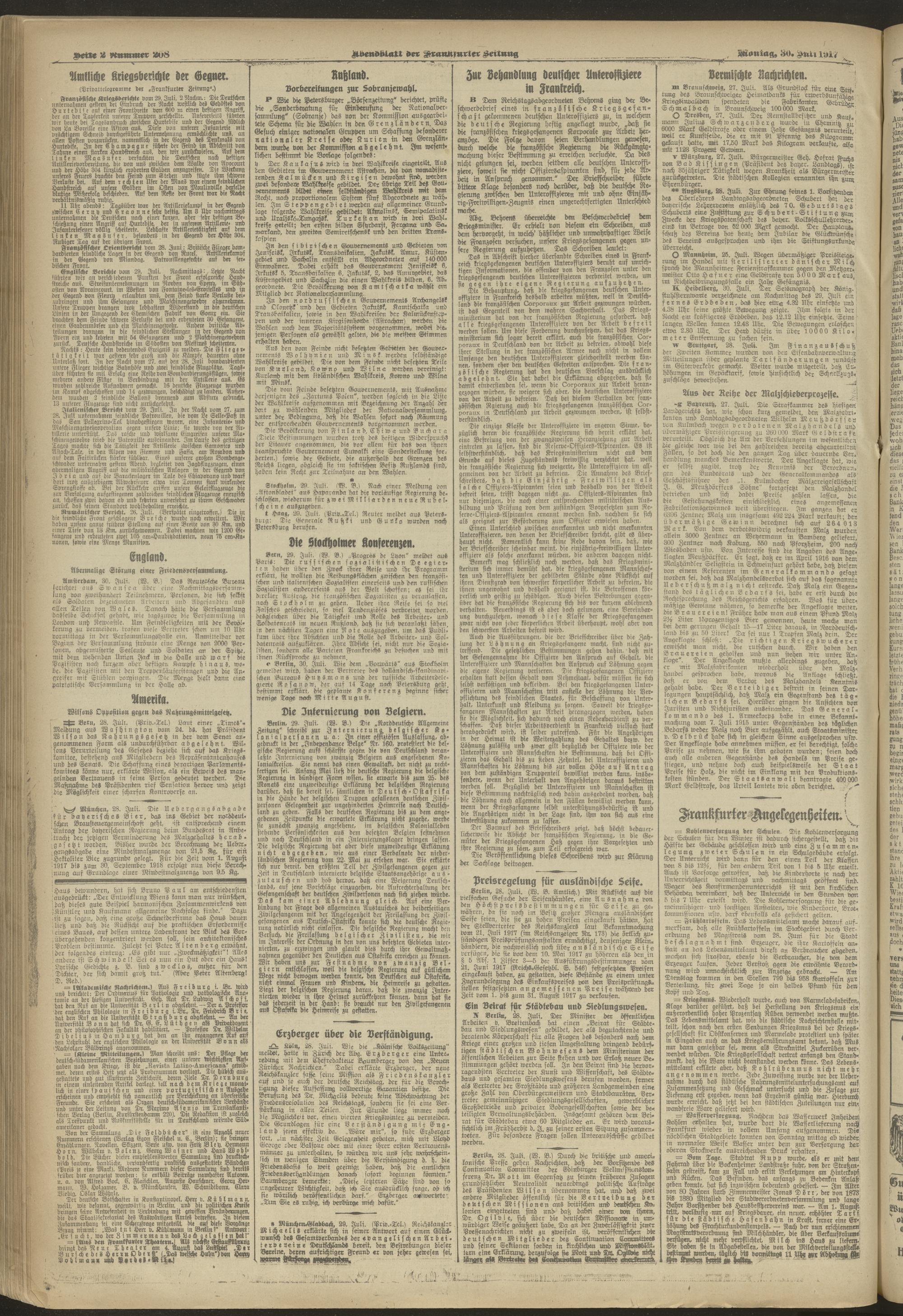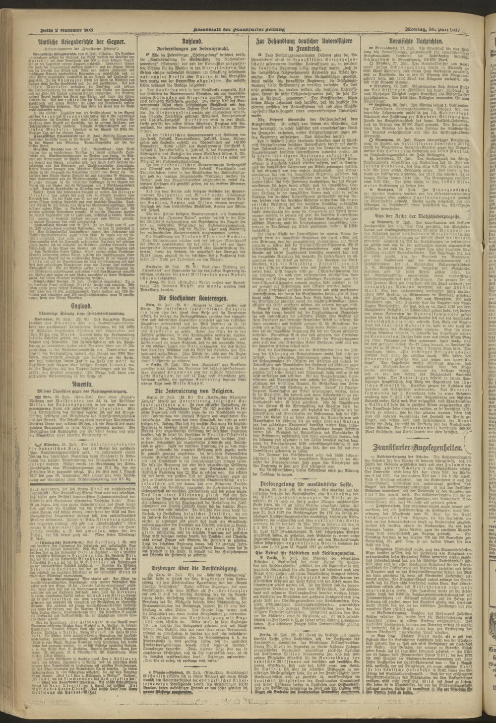 30.07.1917 = Nr. 208. Abendblatt