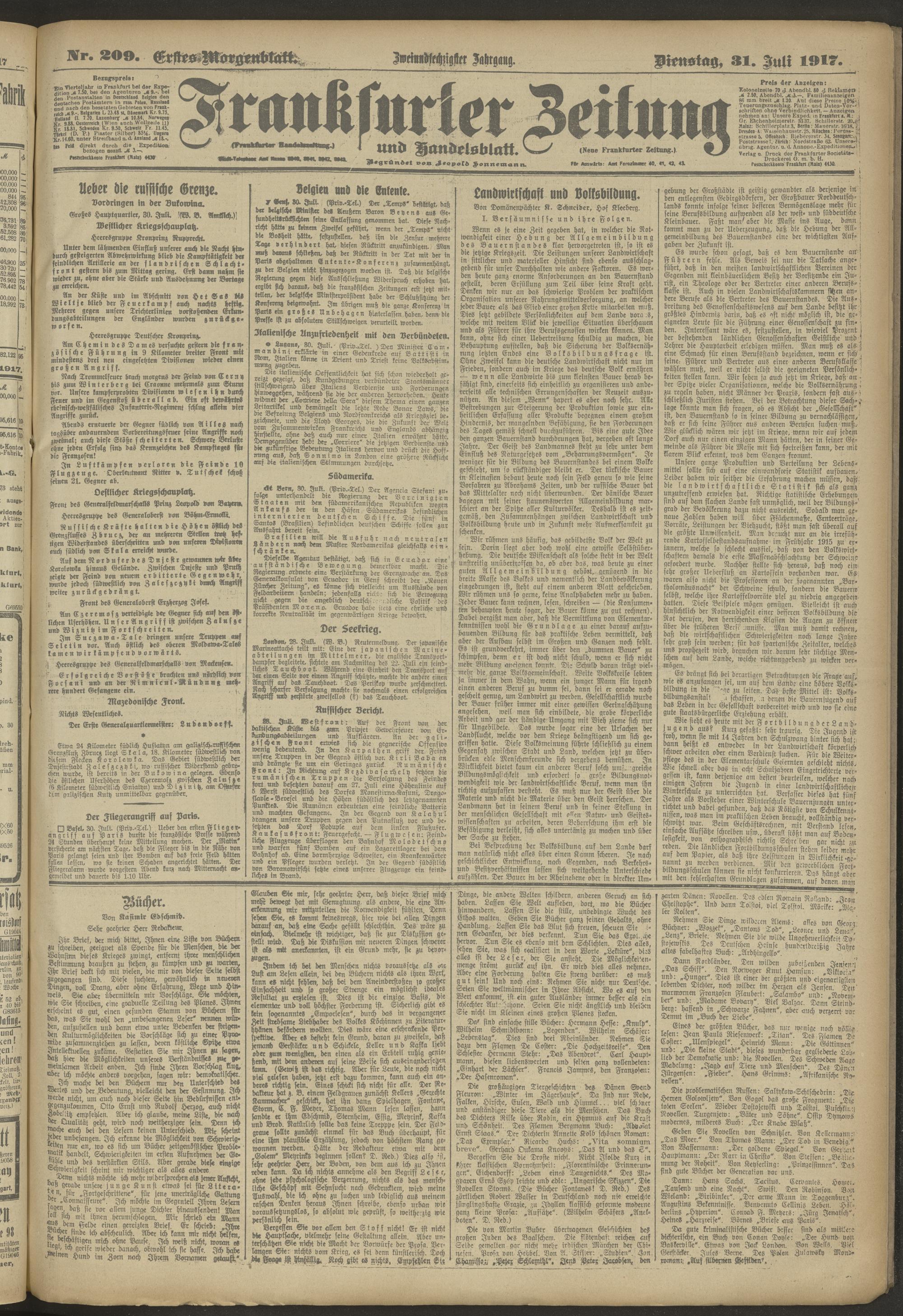 31.07.1917 = Nr. 209. Erstes Morgenblatt