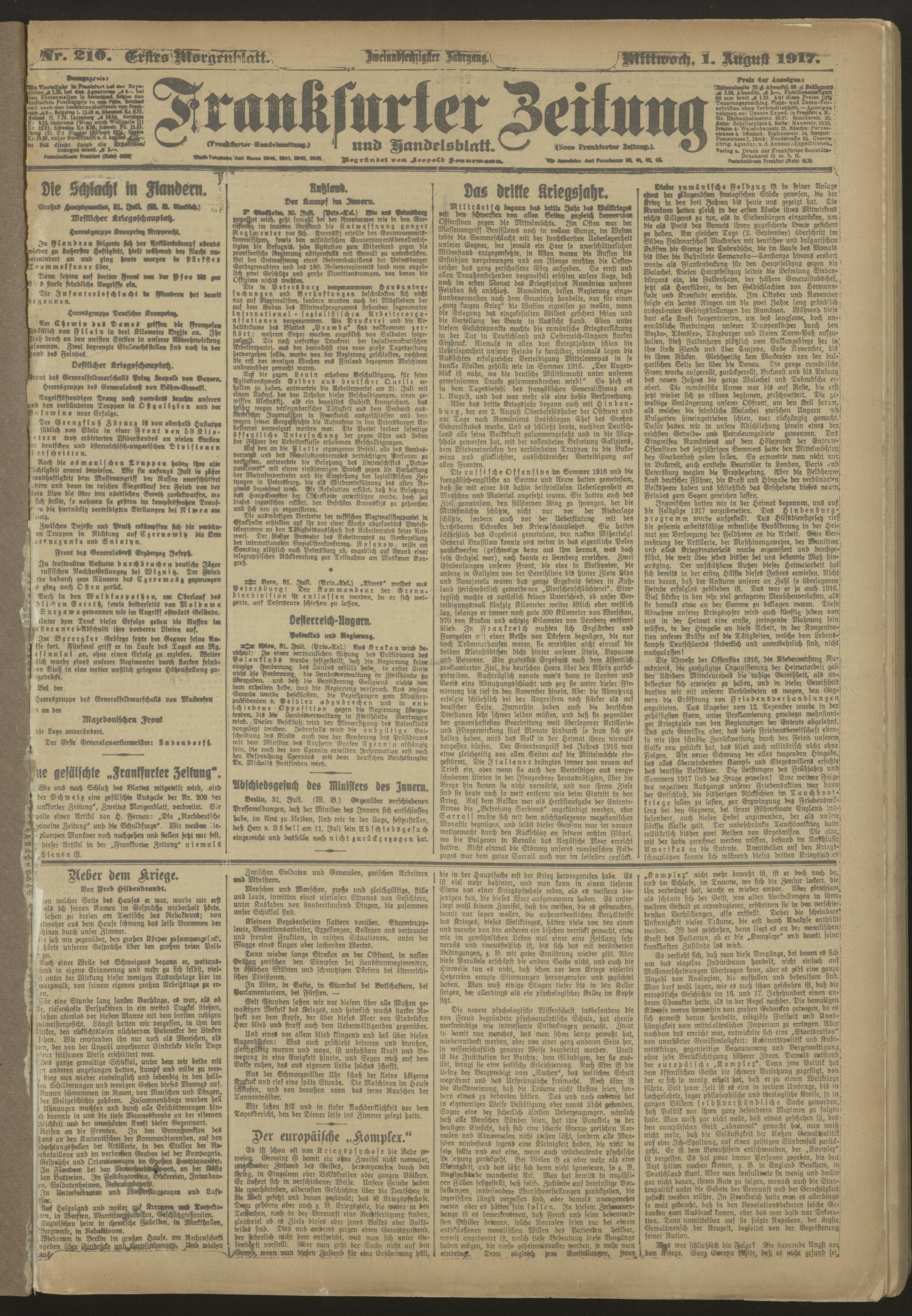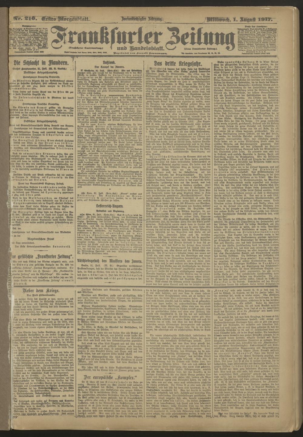 01.08.1917 = Nr. 210. Erstes Morgenblatt