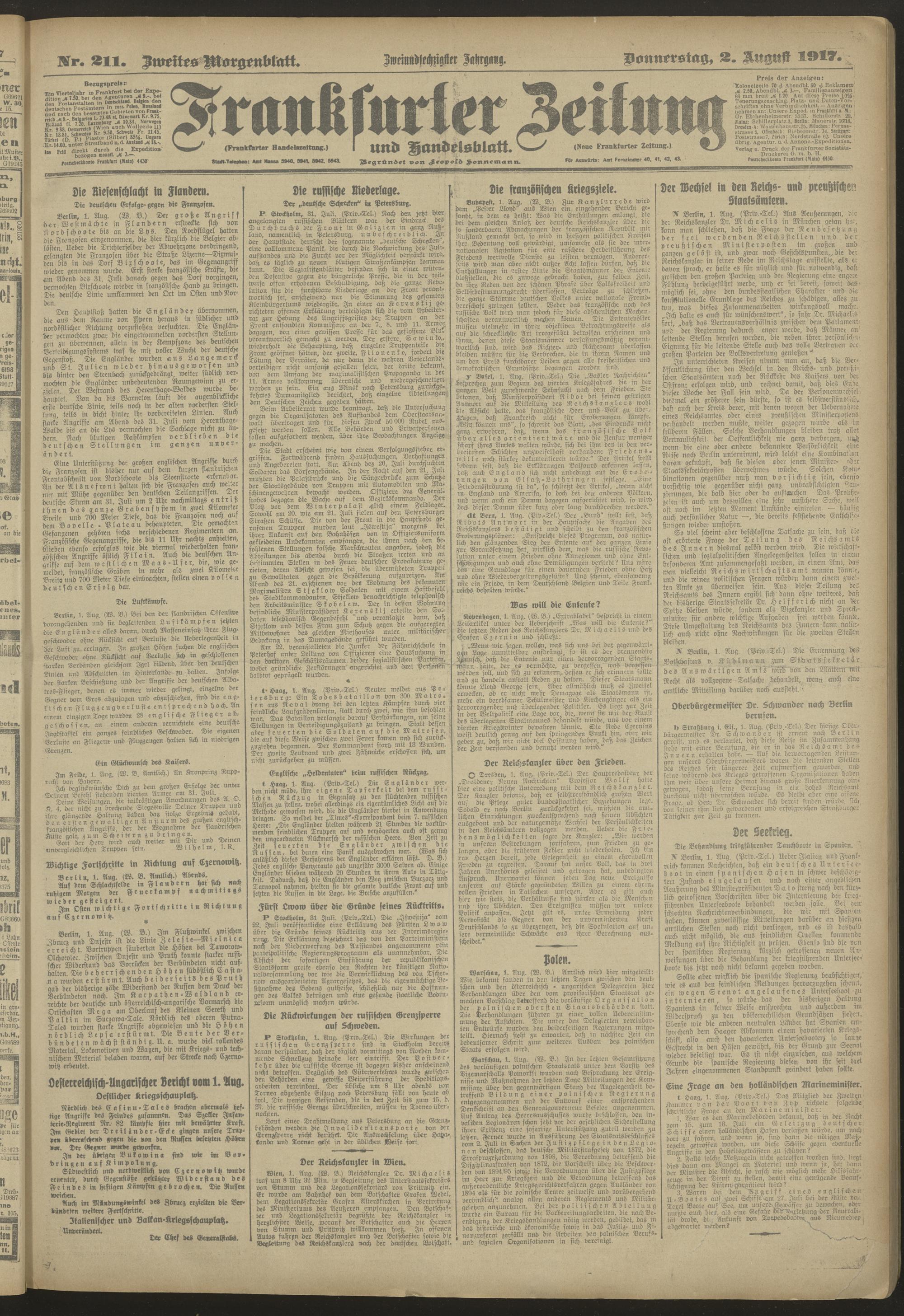 02.08.1917 = Nr. 211. Zweites Morgenblatt