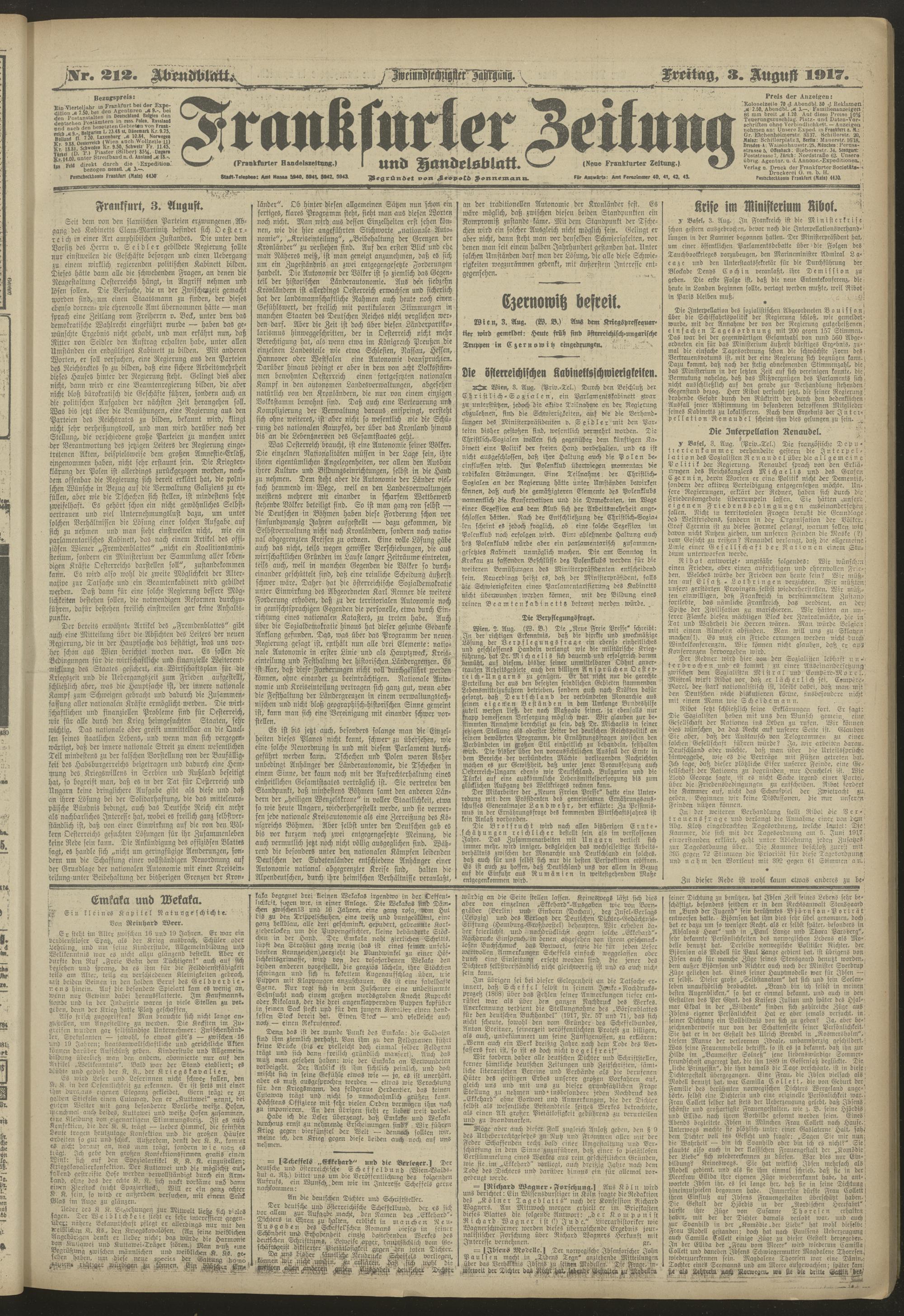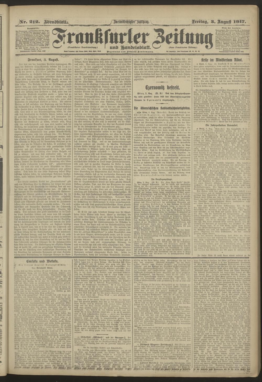 03.08.1917 = Nr. 212. Abendblatt