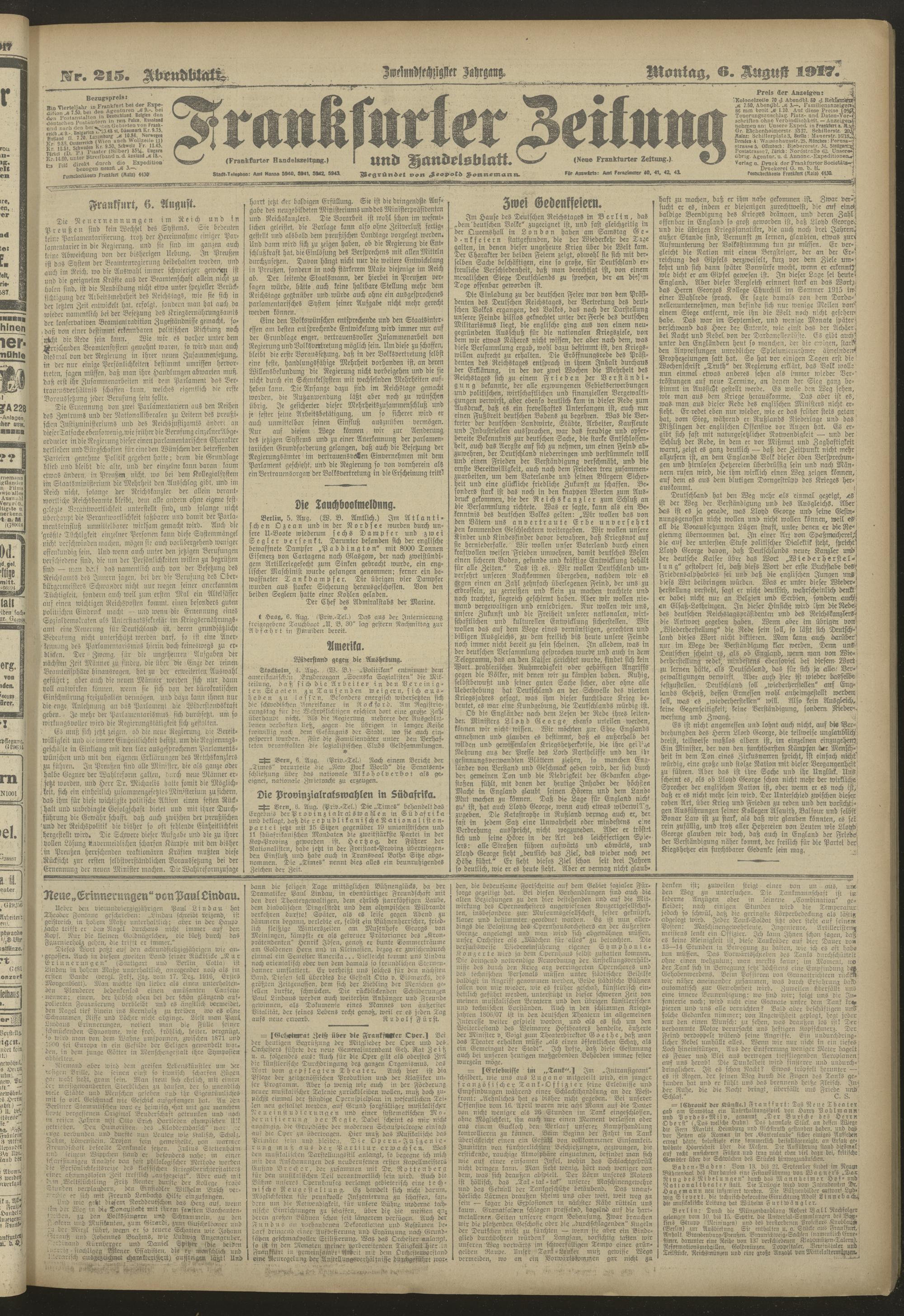06.08.1917 = Nr. 215. Abendblatt