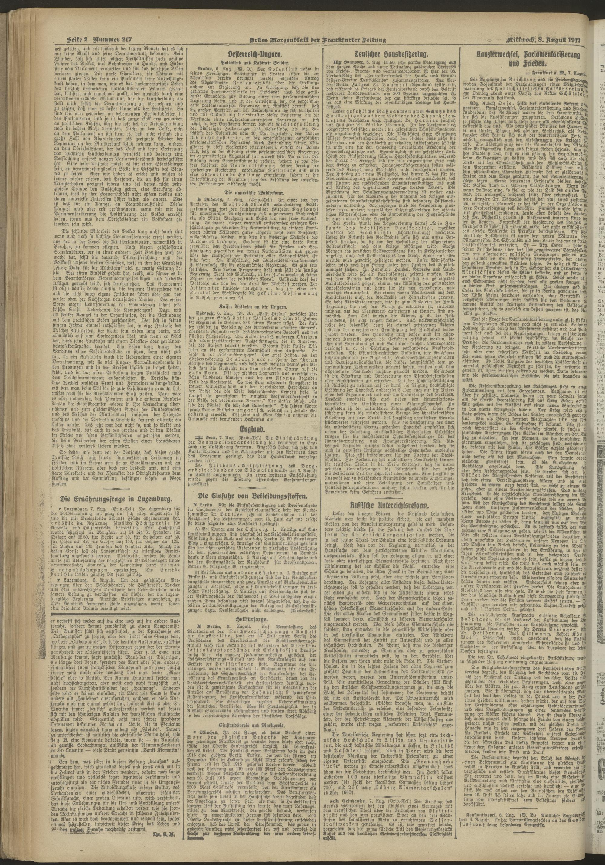08.08.1917 = Nr. 217. Erstes Morgenblatt