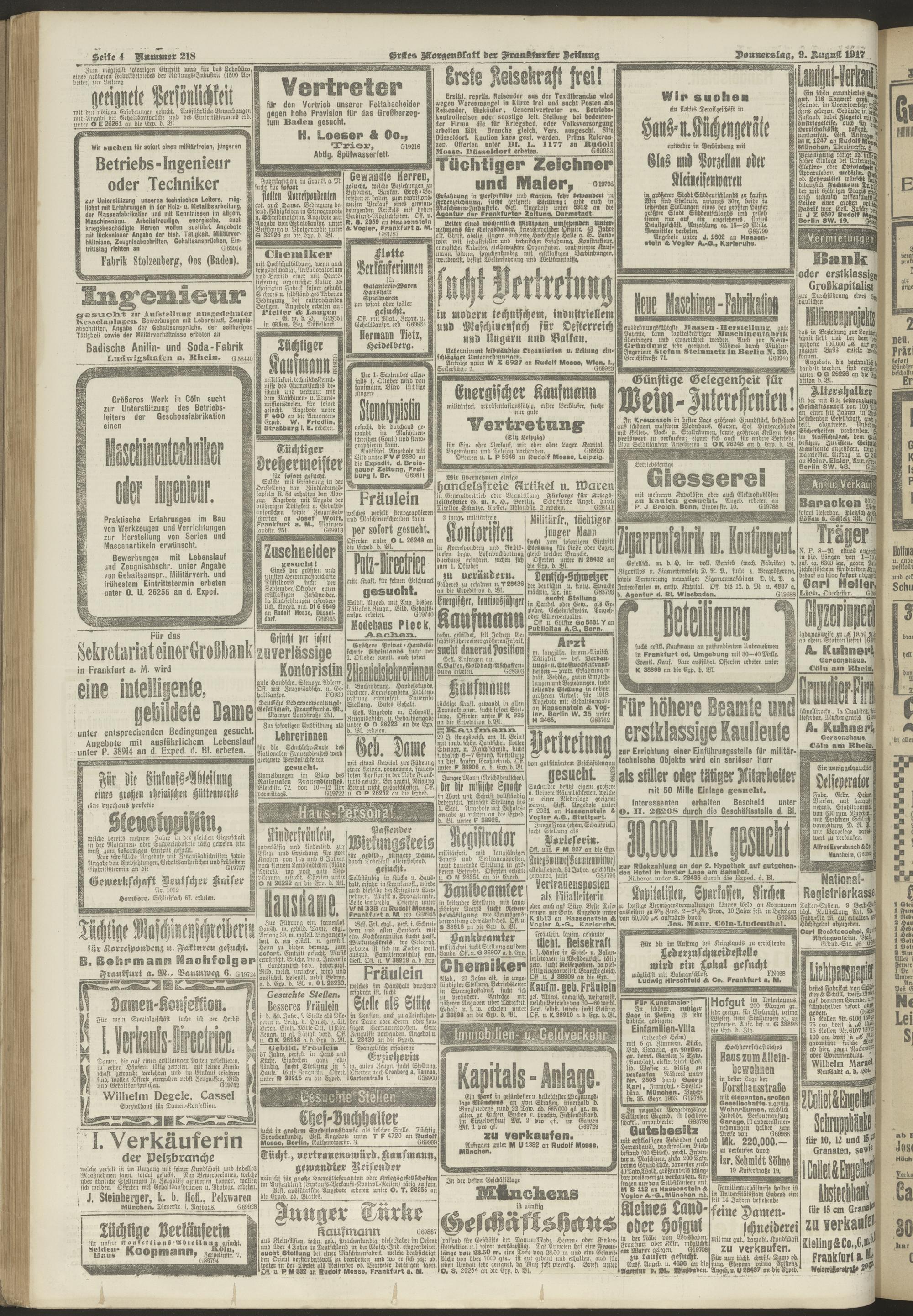 09.08.1917 = Nr. 218. Erstes Morgenblatt
