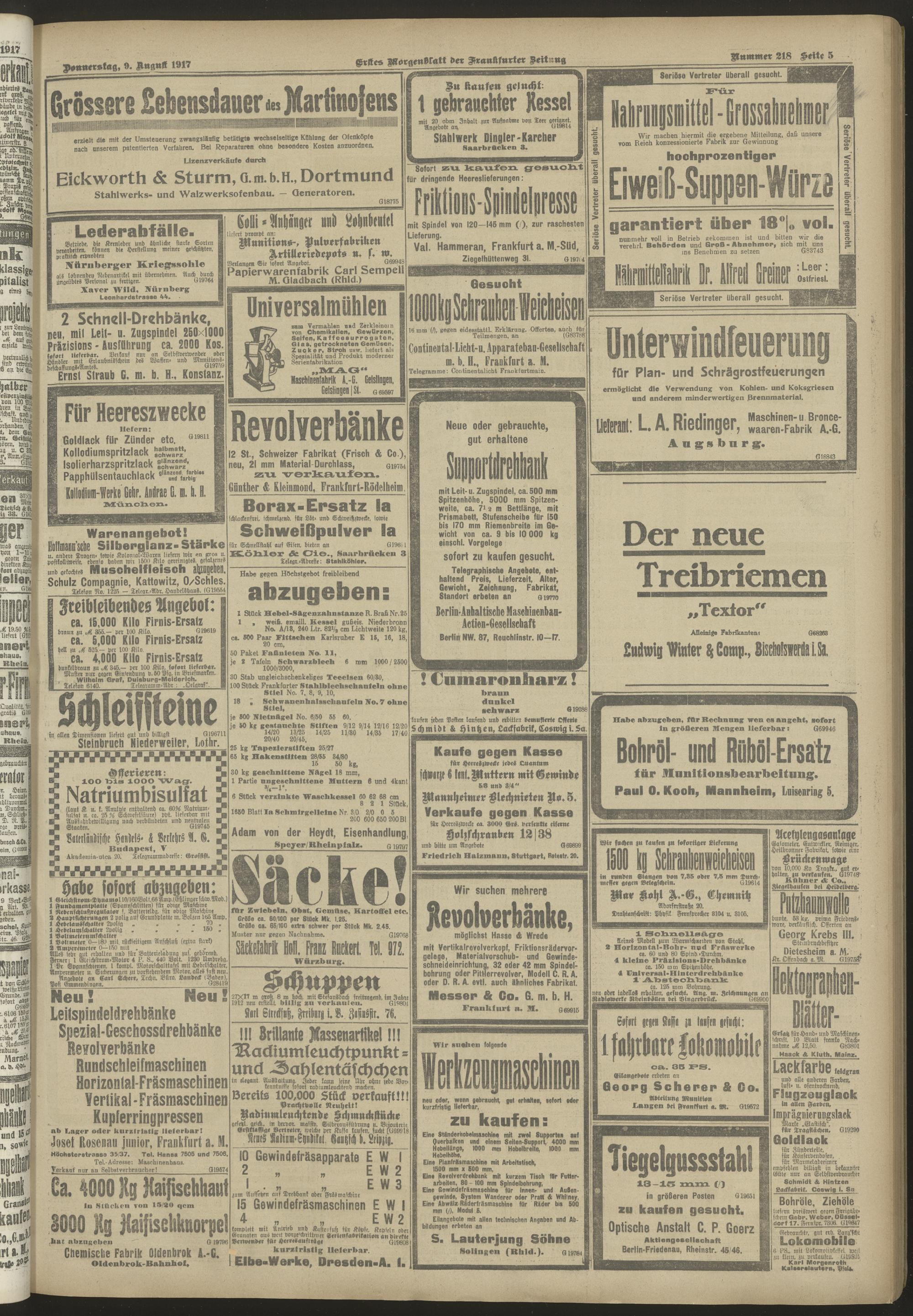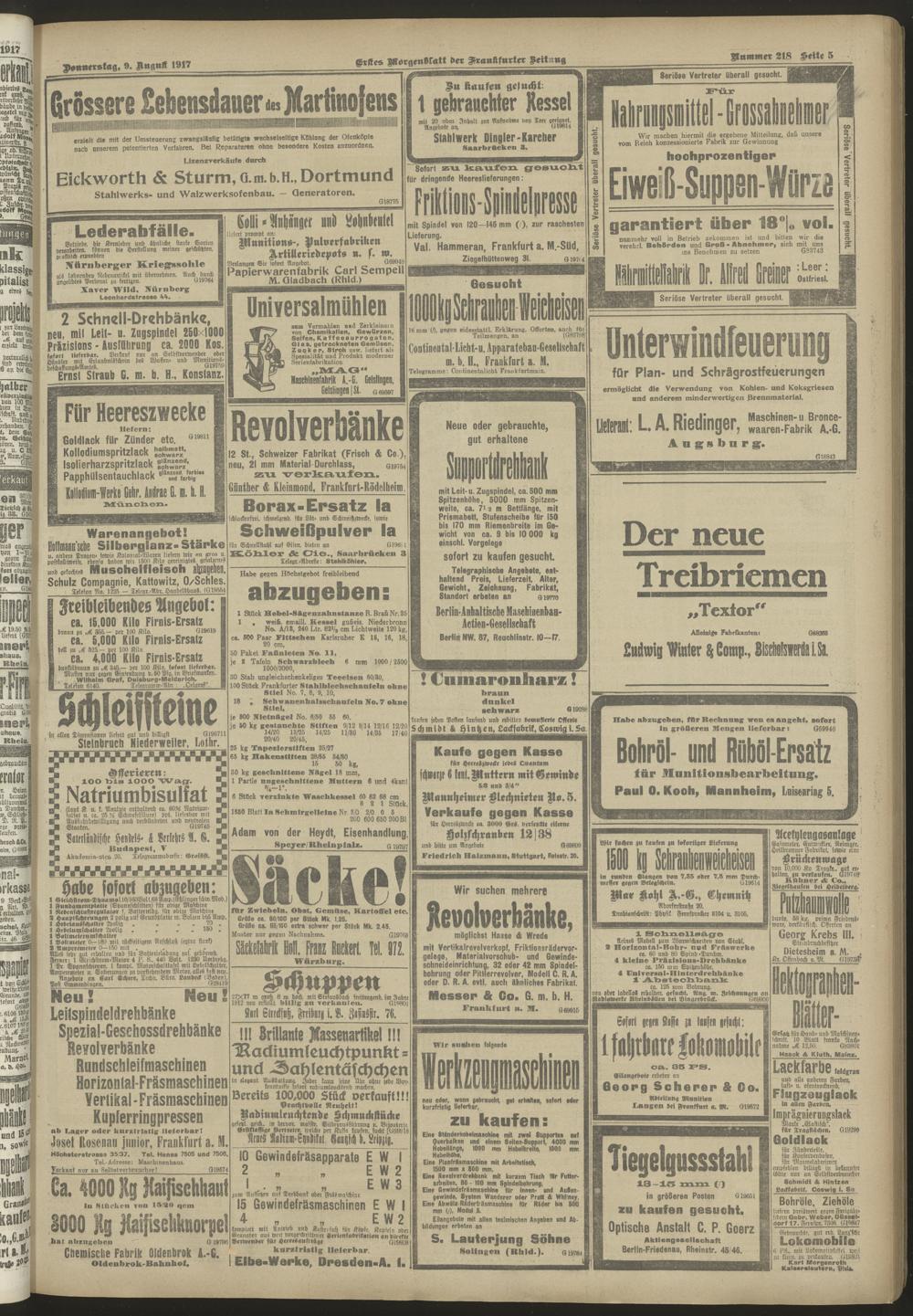 09.08.1917 = Nr. 218. Erstes Morgenblatt