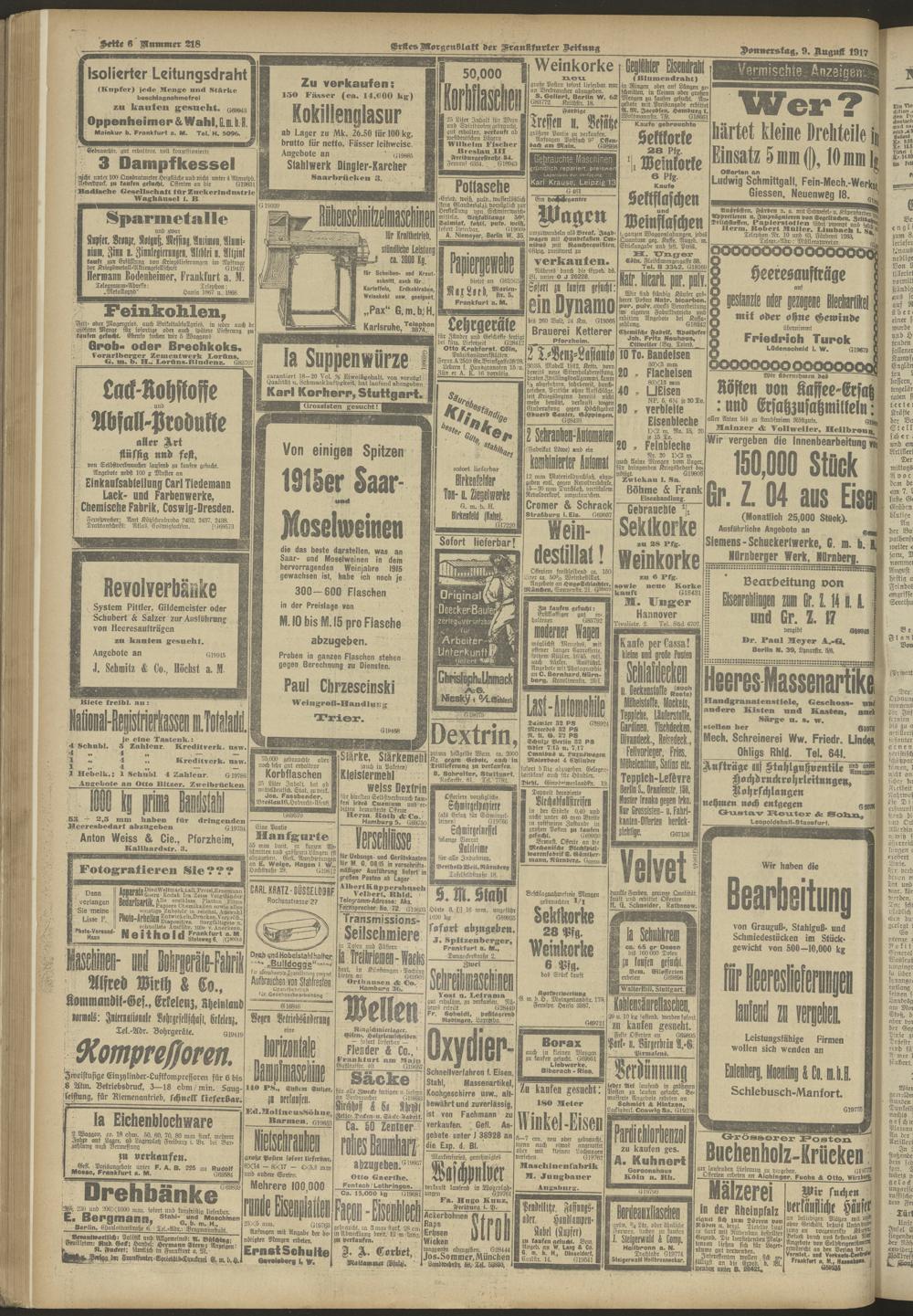 09.08.1917 = Nr. 218. Erstes Morgenblatt