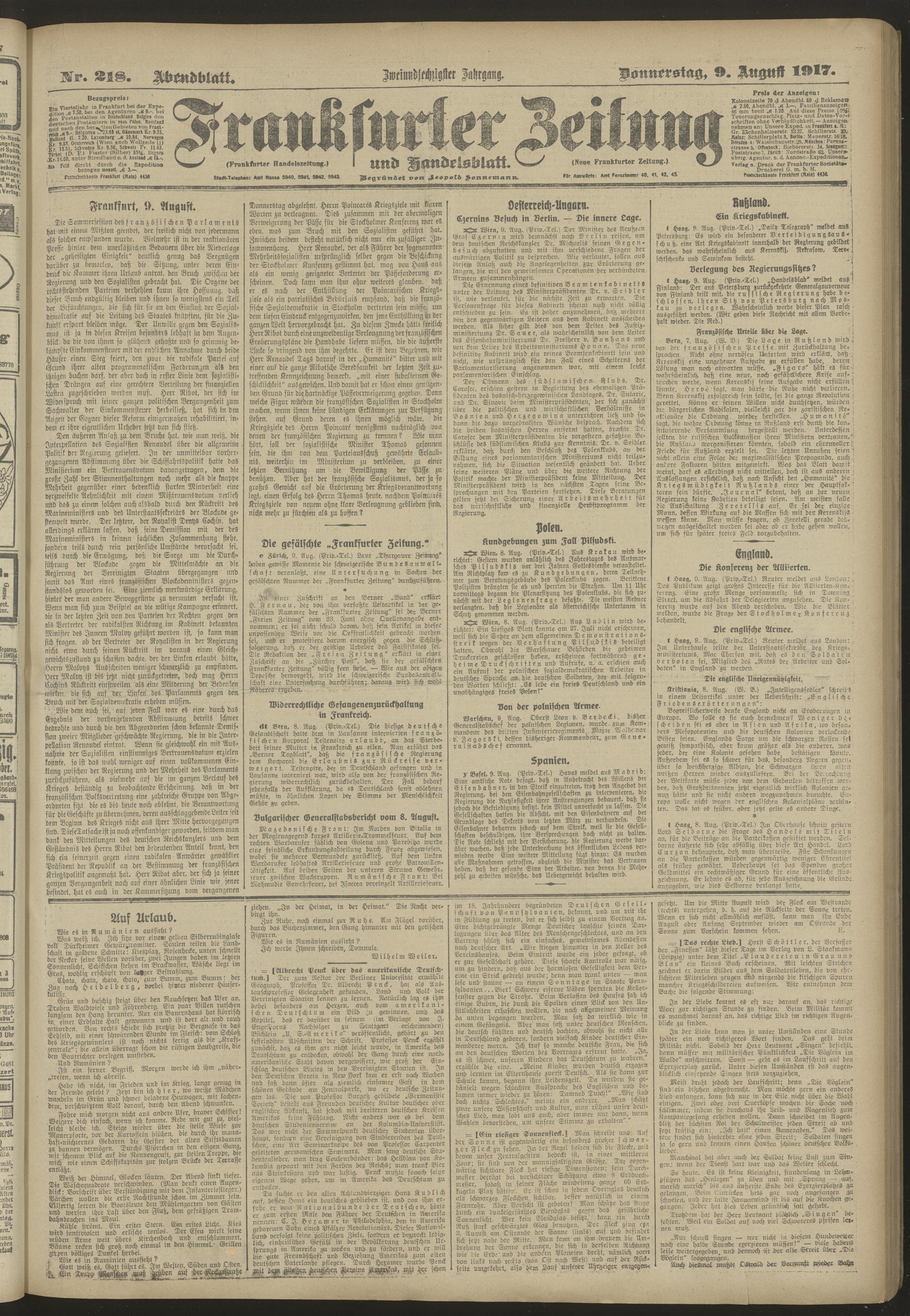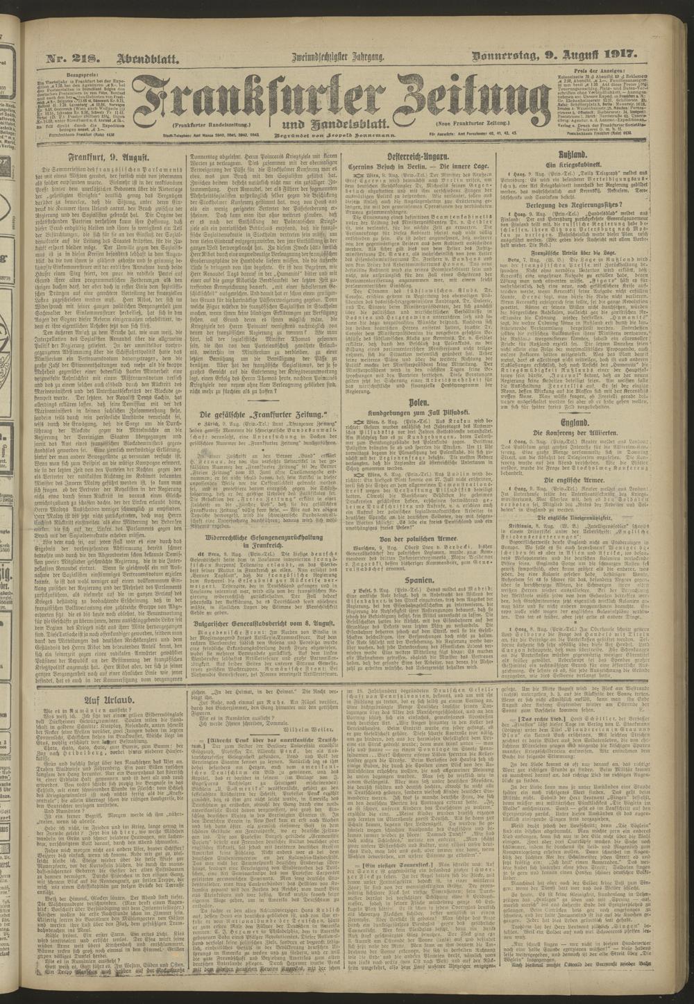 09.08.1917 = Nr. 218. Abendblatt
