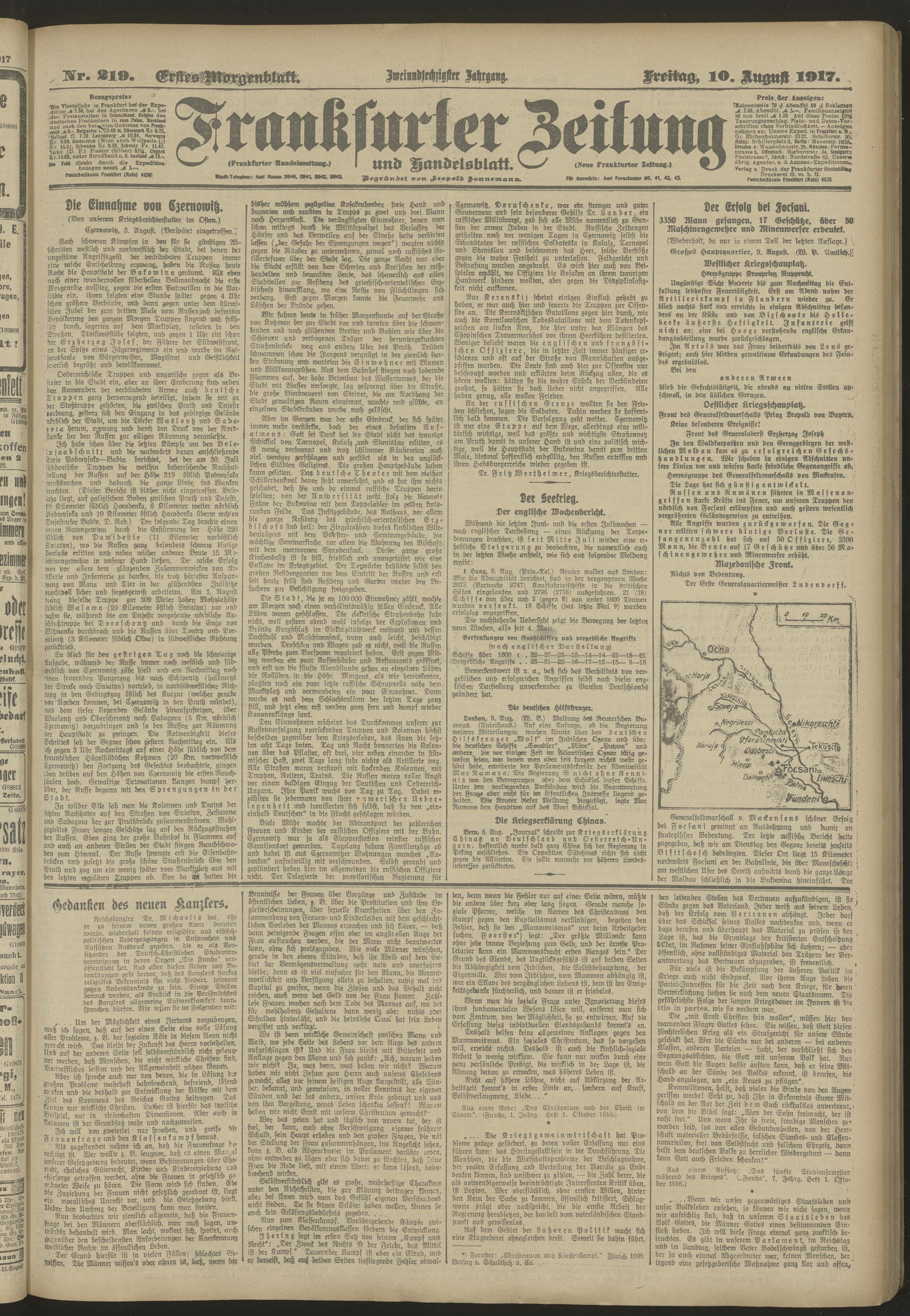10.08.1917 = Nr. 219. Erstes Morgenblatt