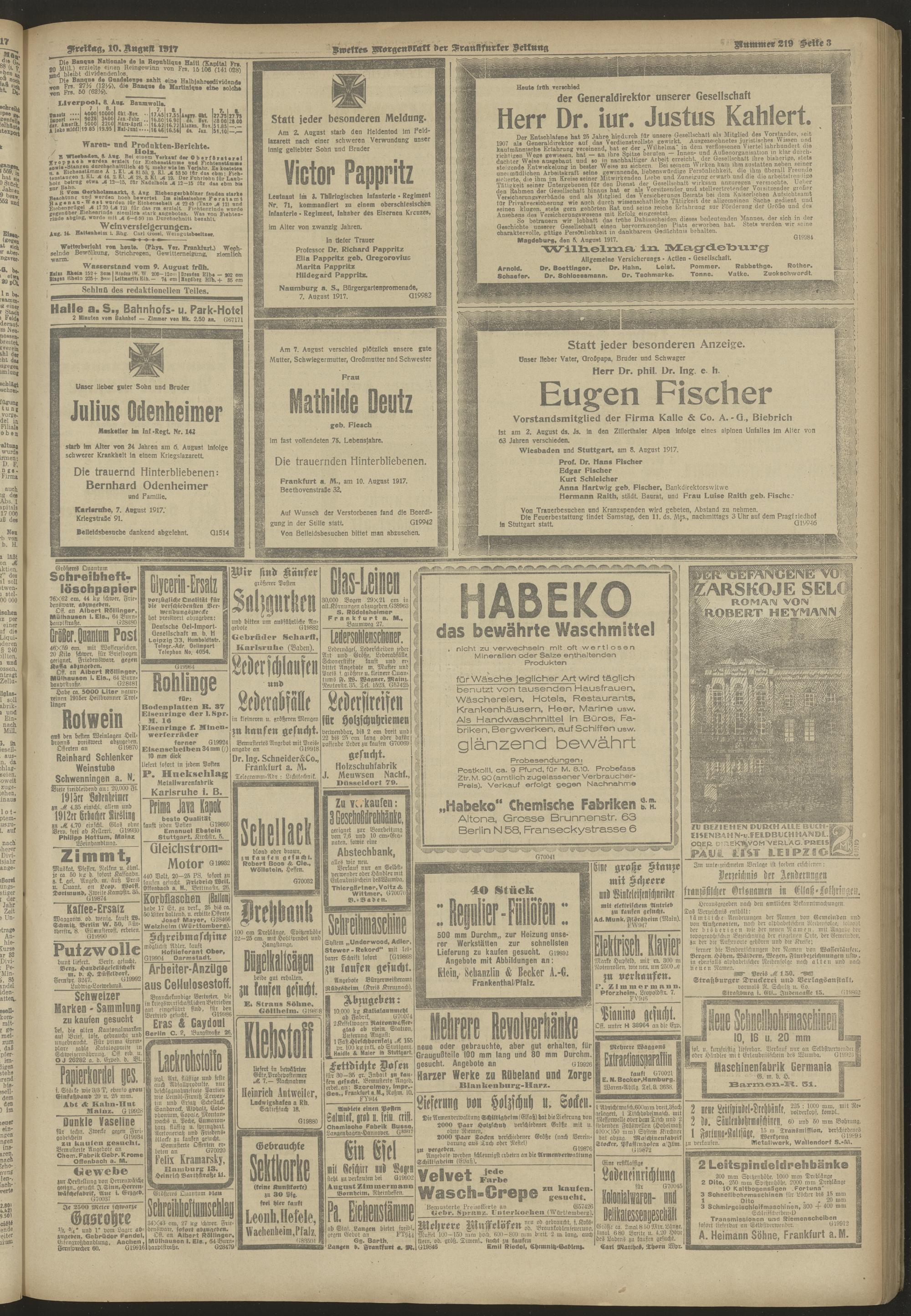 10.08.1917 = Nr. 219. Zweites Morgenblatt