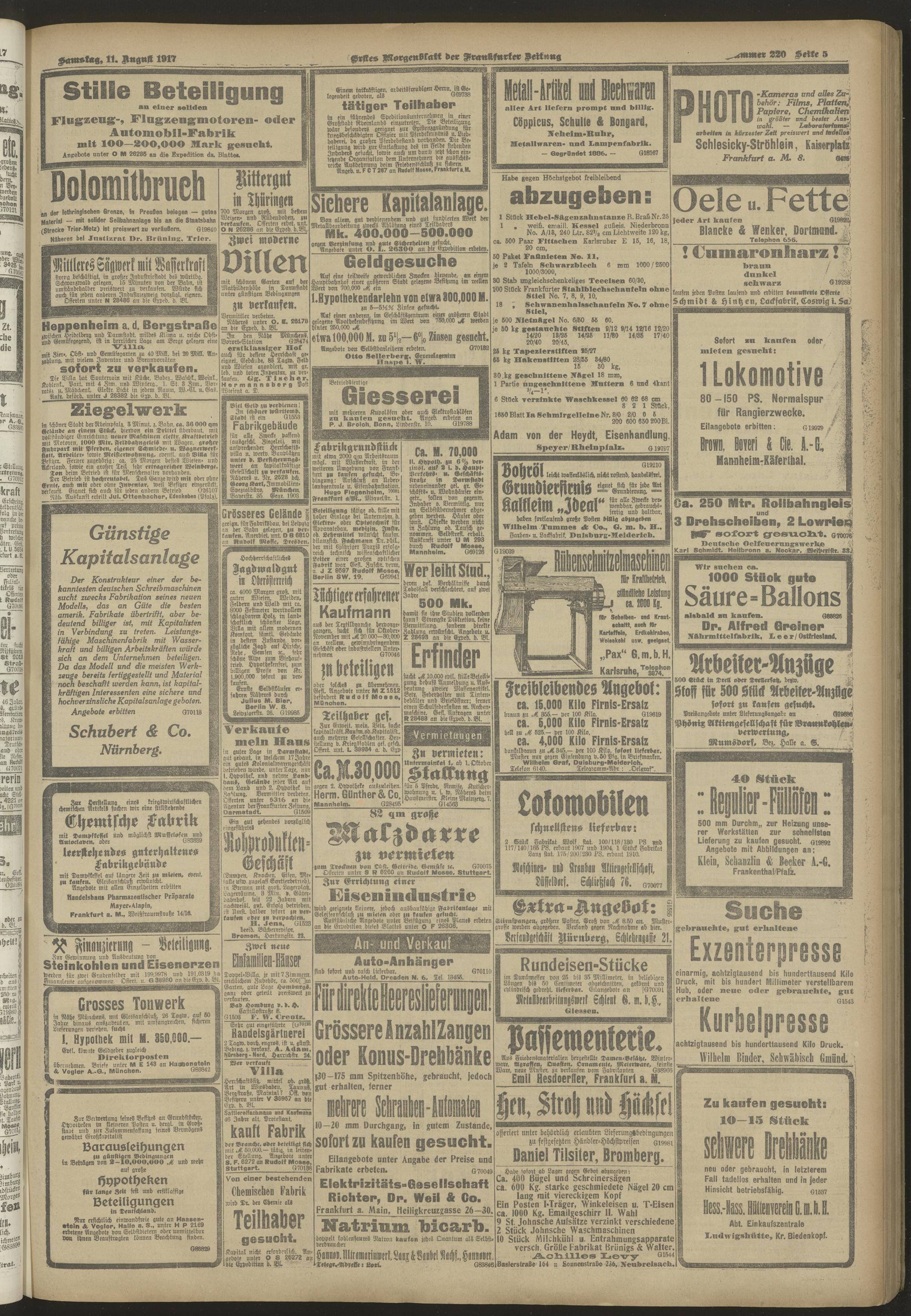 11.08.1917 = Nr. 220. Erstes Morgenblatt