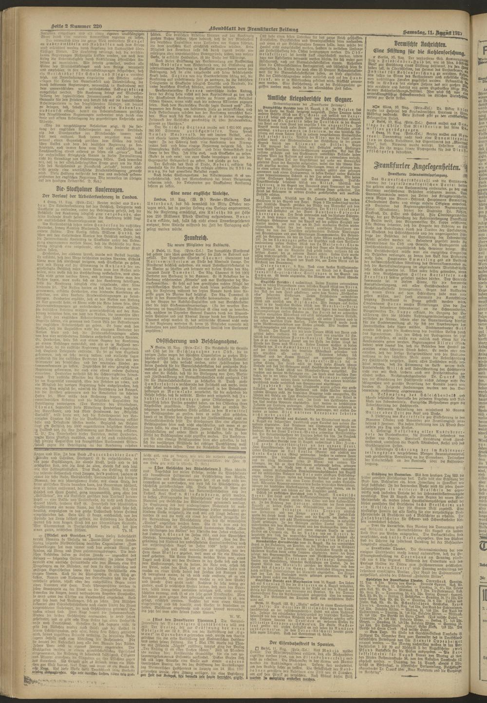 11.08.1917 = Nr. 220. Abendblatt