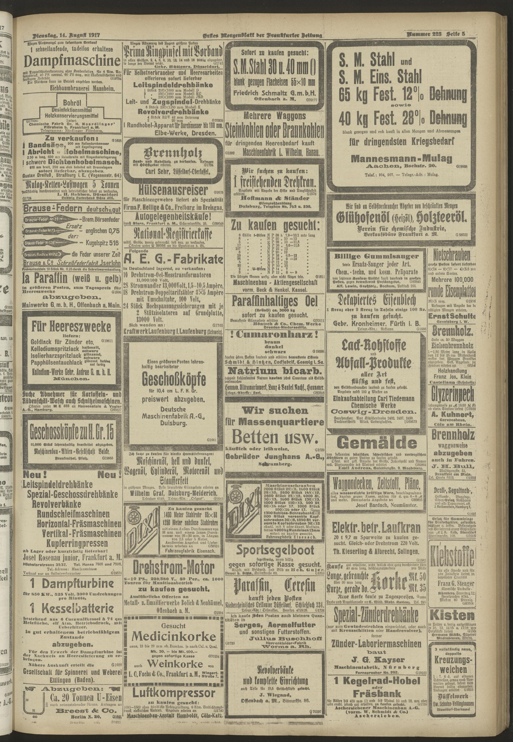14.08.1917 = Nr. 223. Erstes Morgenblatt