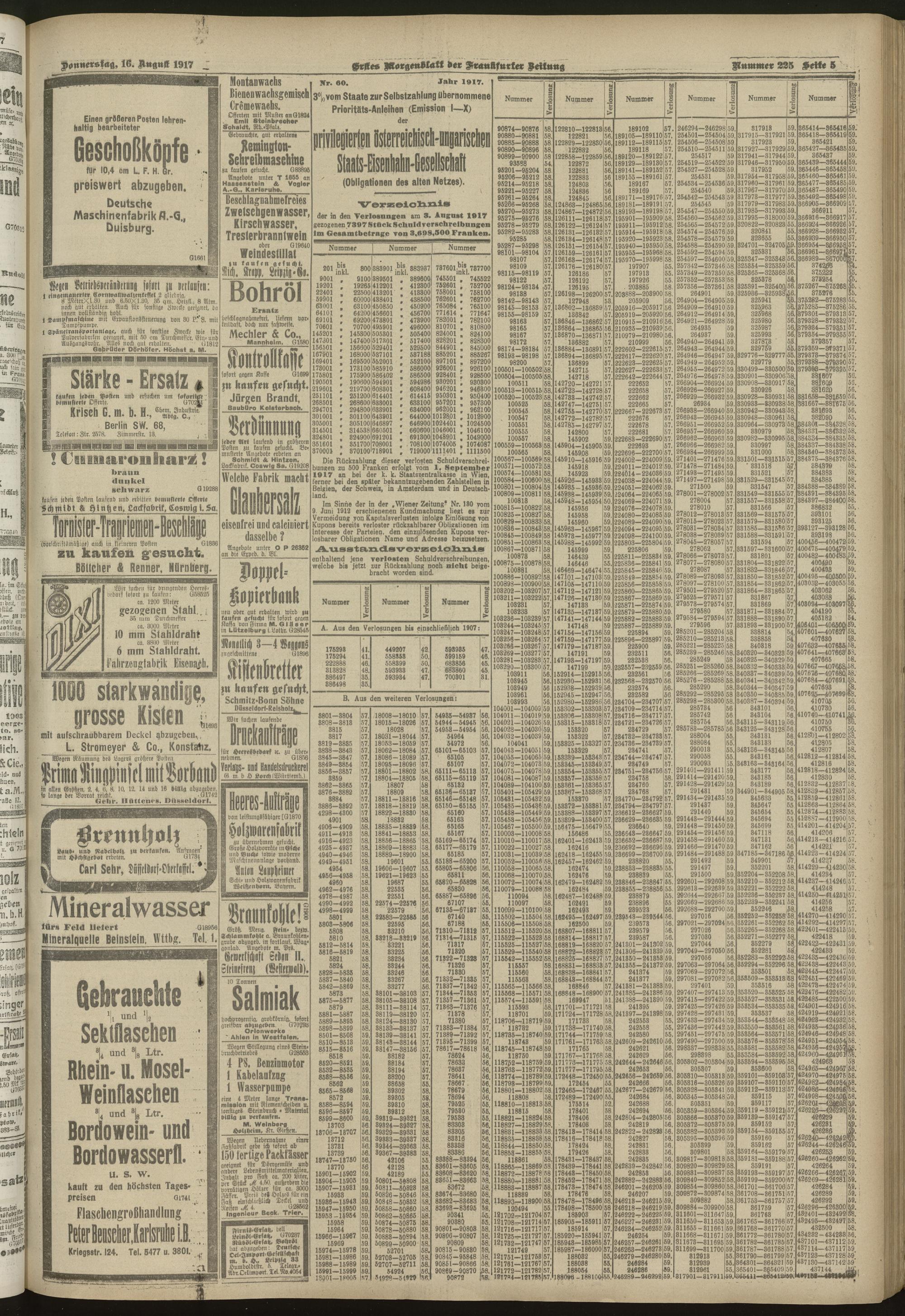 16.08.1917 = Nr. 225. Erstes Morgenblatt