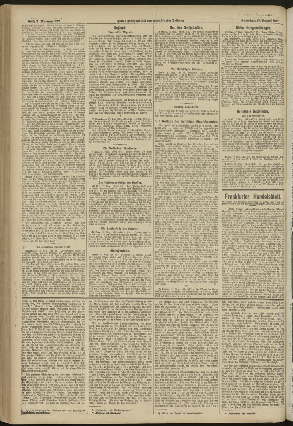 18.08.1917 = Nr. 227. Erstes Morgenblatt