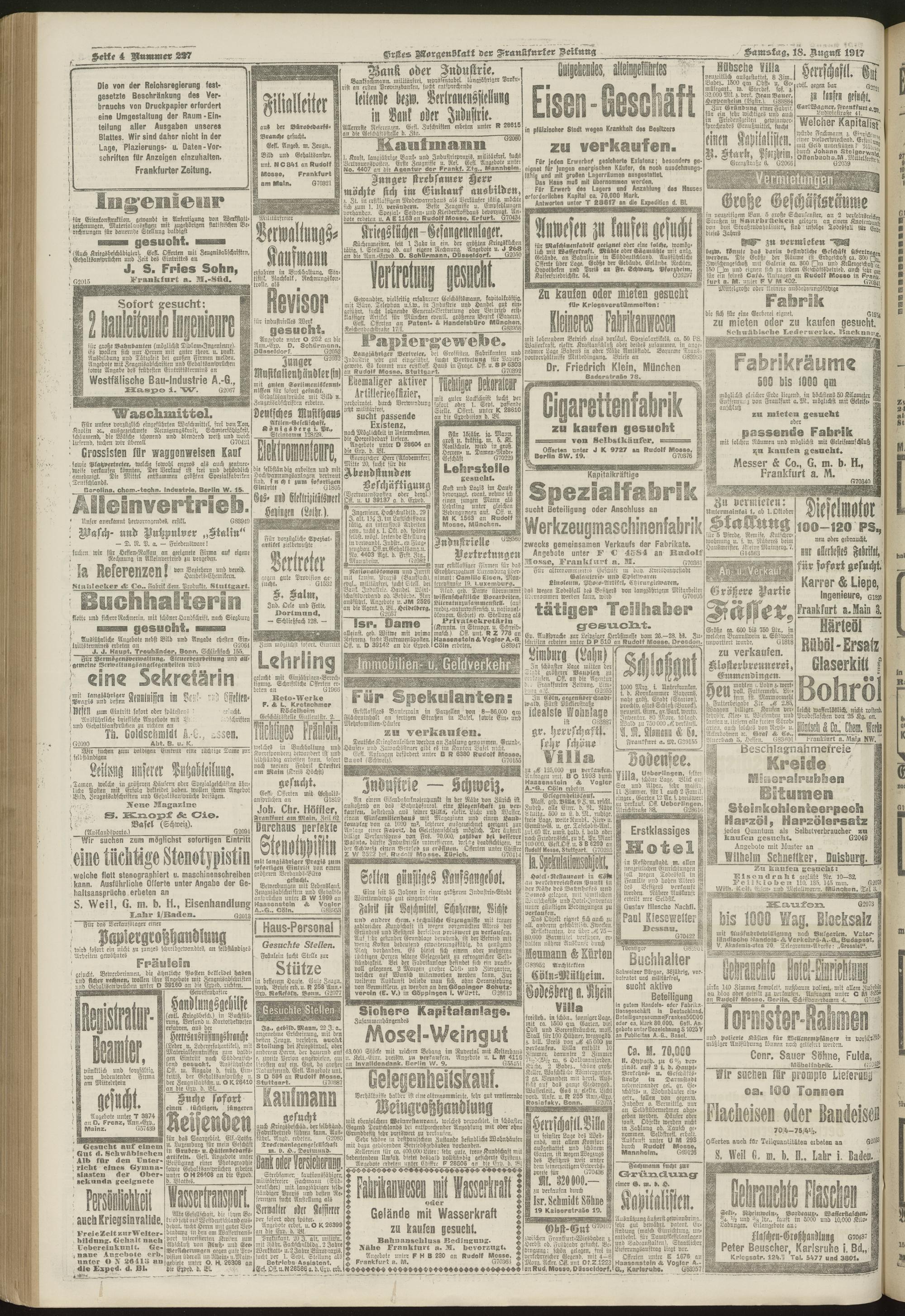 18.08.1917 = Nr. 227. Erstes Morgenblatt