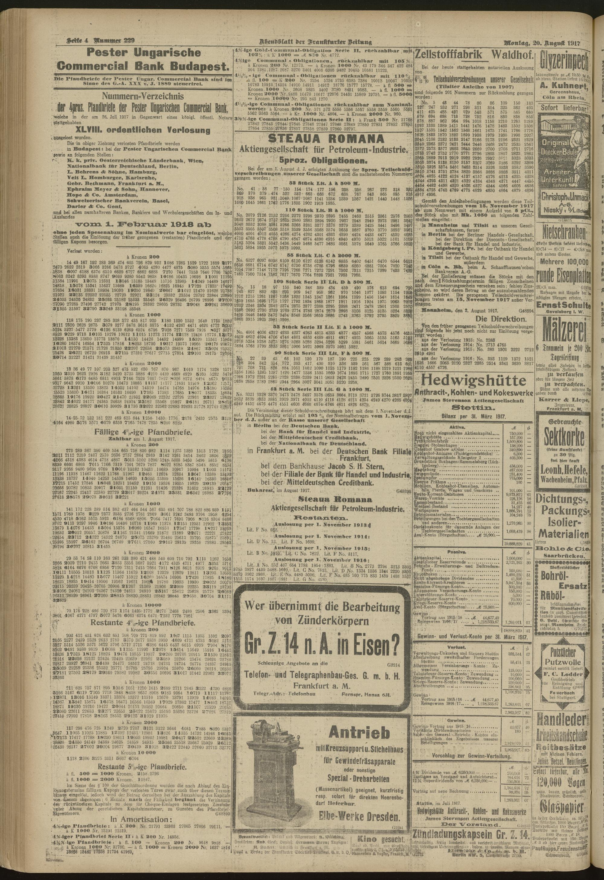 20.08.1917 = Nr. 229. Abendblatt