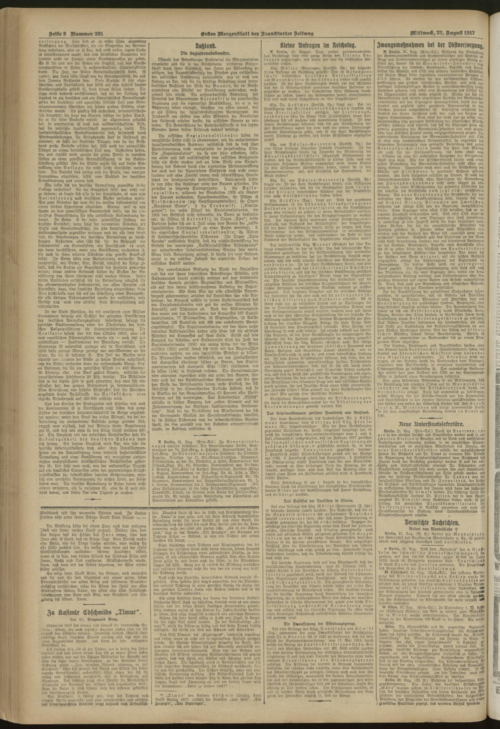 22.08.1917 = Nr. 231. Erstes Morgenblatt