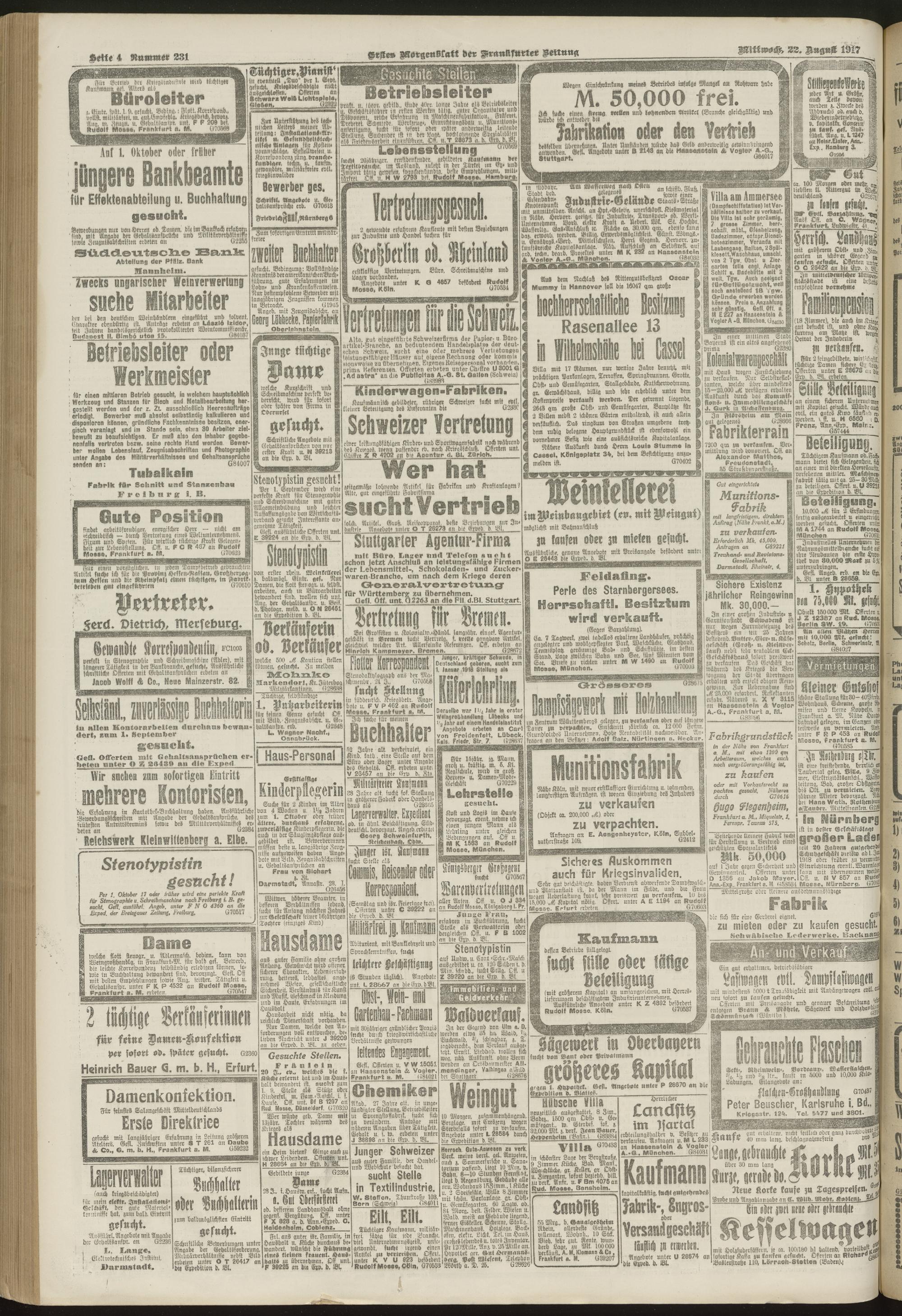 22.08.1917 = Nr. 231. Erstes Morgenblatt